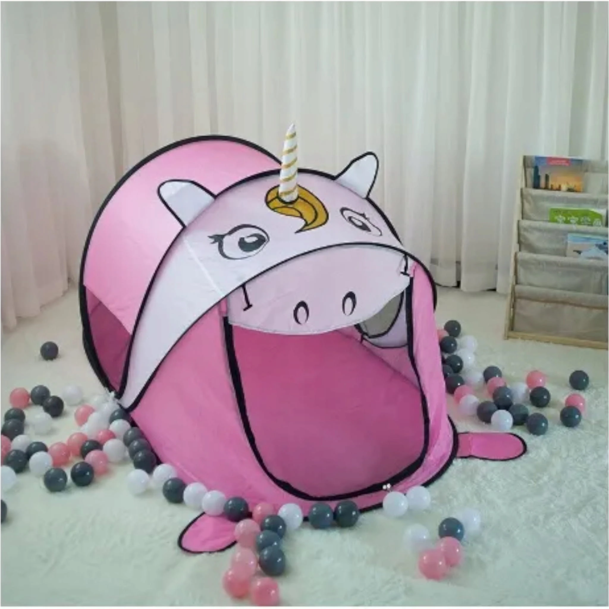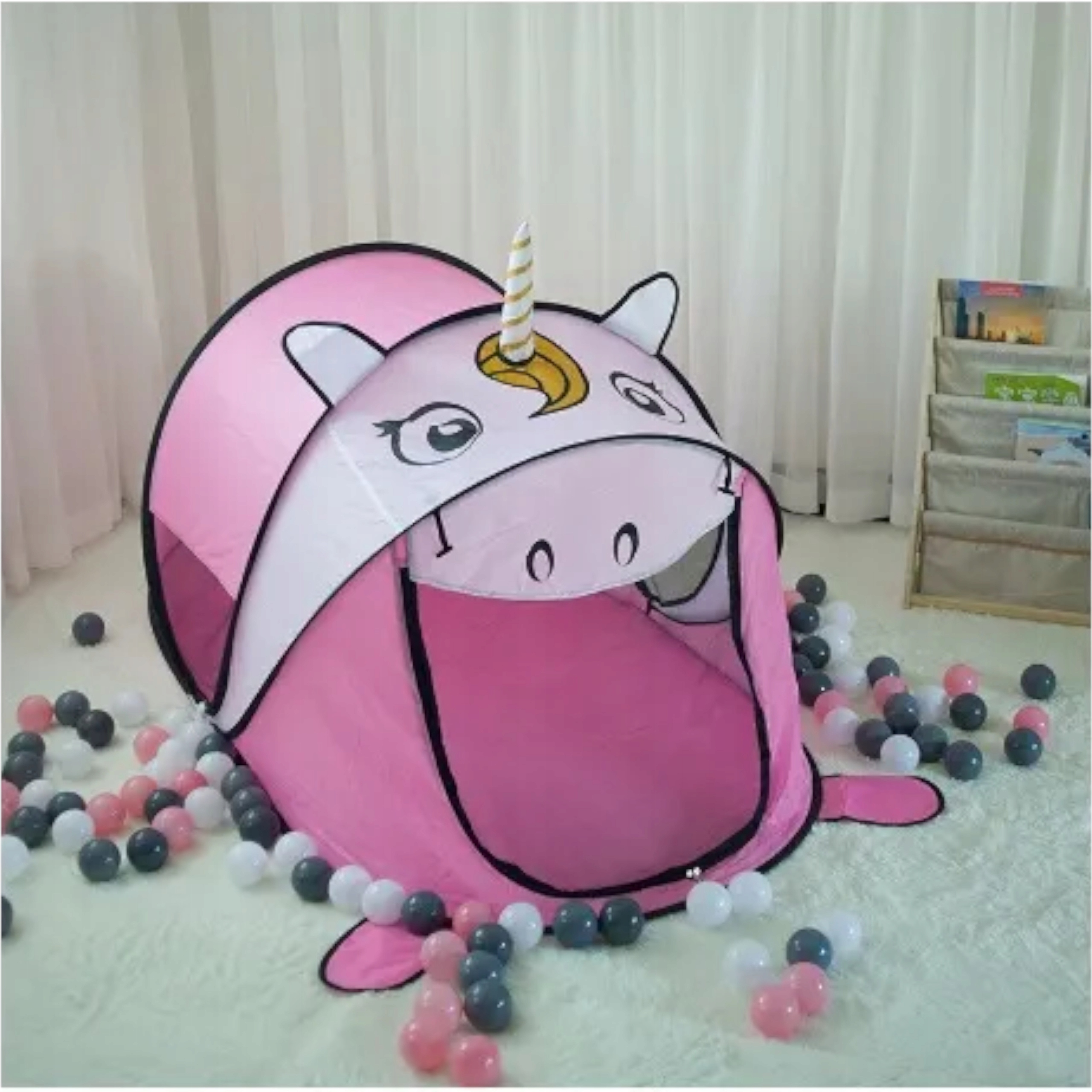 Namiot w kształcie jednorożca idealny jest dla małych dziewczynek w wieku przedszkolnym i wczesnoszkolnym. Namiot dla dzieci to wyśmienita zabawa na długie zabawy.