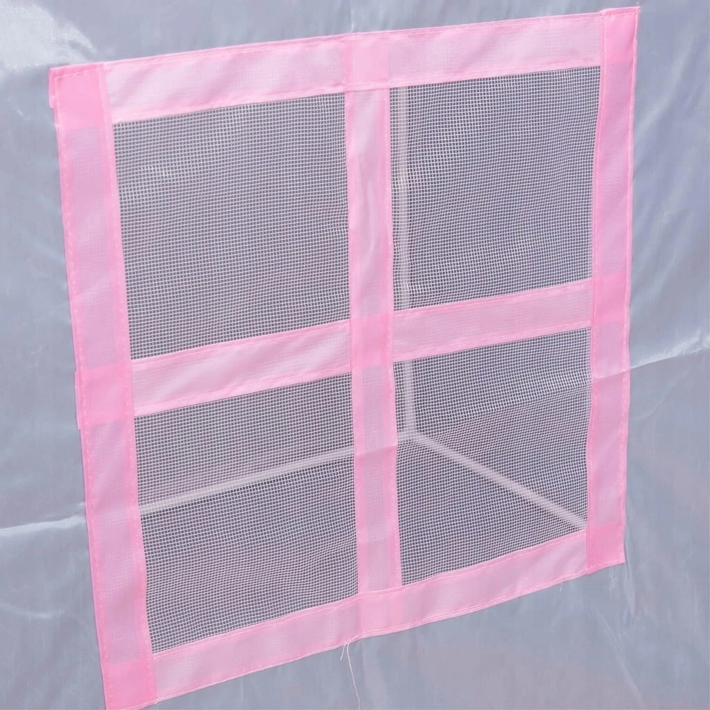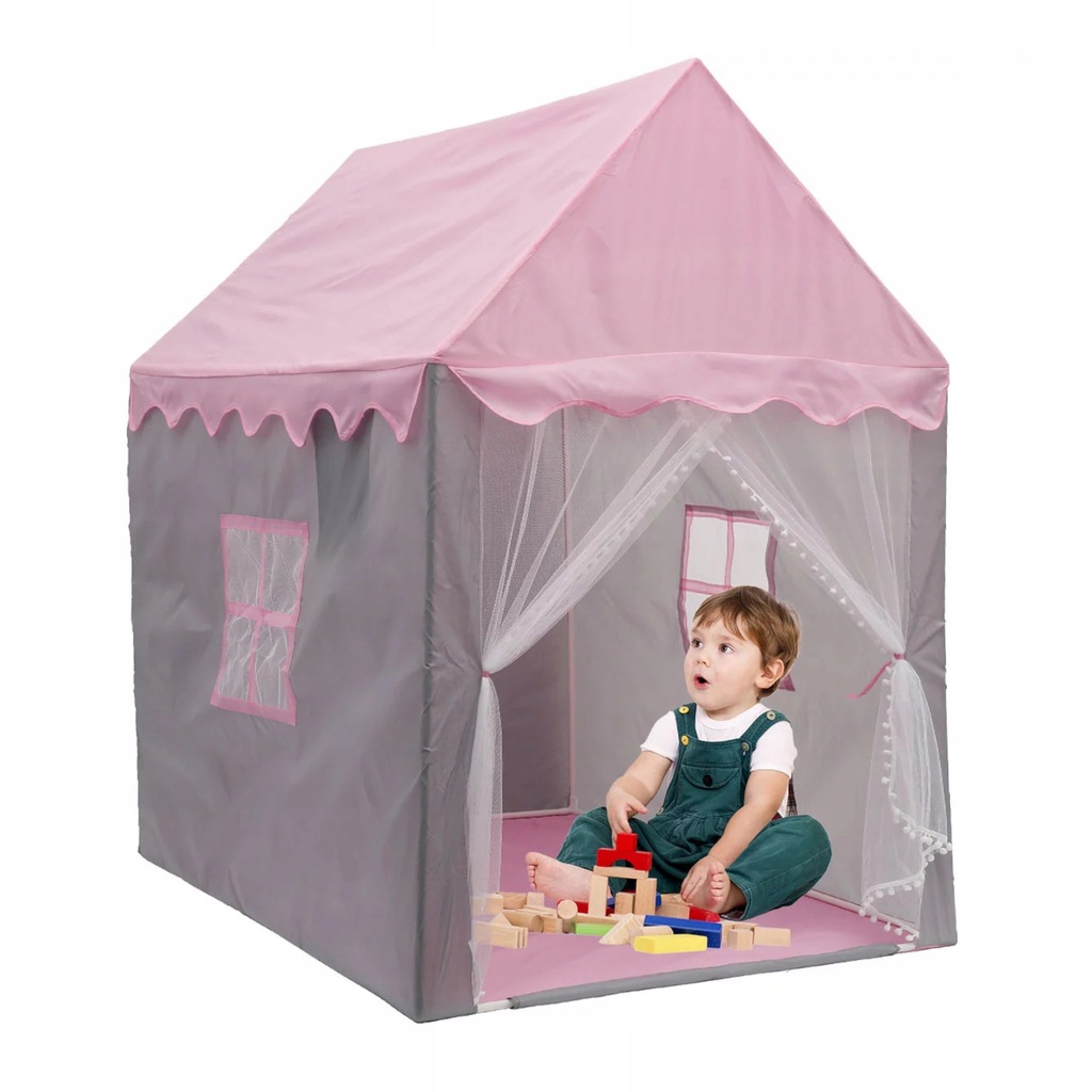 Namiot posiada wejście z delikatnymi zasłonami które można zamocować po bokach wejścia, przez co jest bardzo wygodny w użytkowaniu, ponadto posiada podłogę dzięki której Twoje dziecko nie pobrudzi się podczas zabawy i będzie mogło rozłożyć na niej swój ulubiony koc, poduszki czy pluszaki. Namiot posiada dwa siatkowe okienka, które zapewnią dodatkową wentylację w środku namiotu. Dodatkowo w zestawie znajdują się kolorowe lampki kuleczki oraz łańcuch z lampkami w kształcie gwiazdek, które dodatkowo pomogą w stworzeniu wieczorem przytulnego klimatu.
