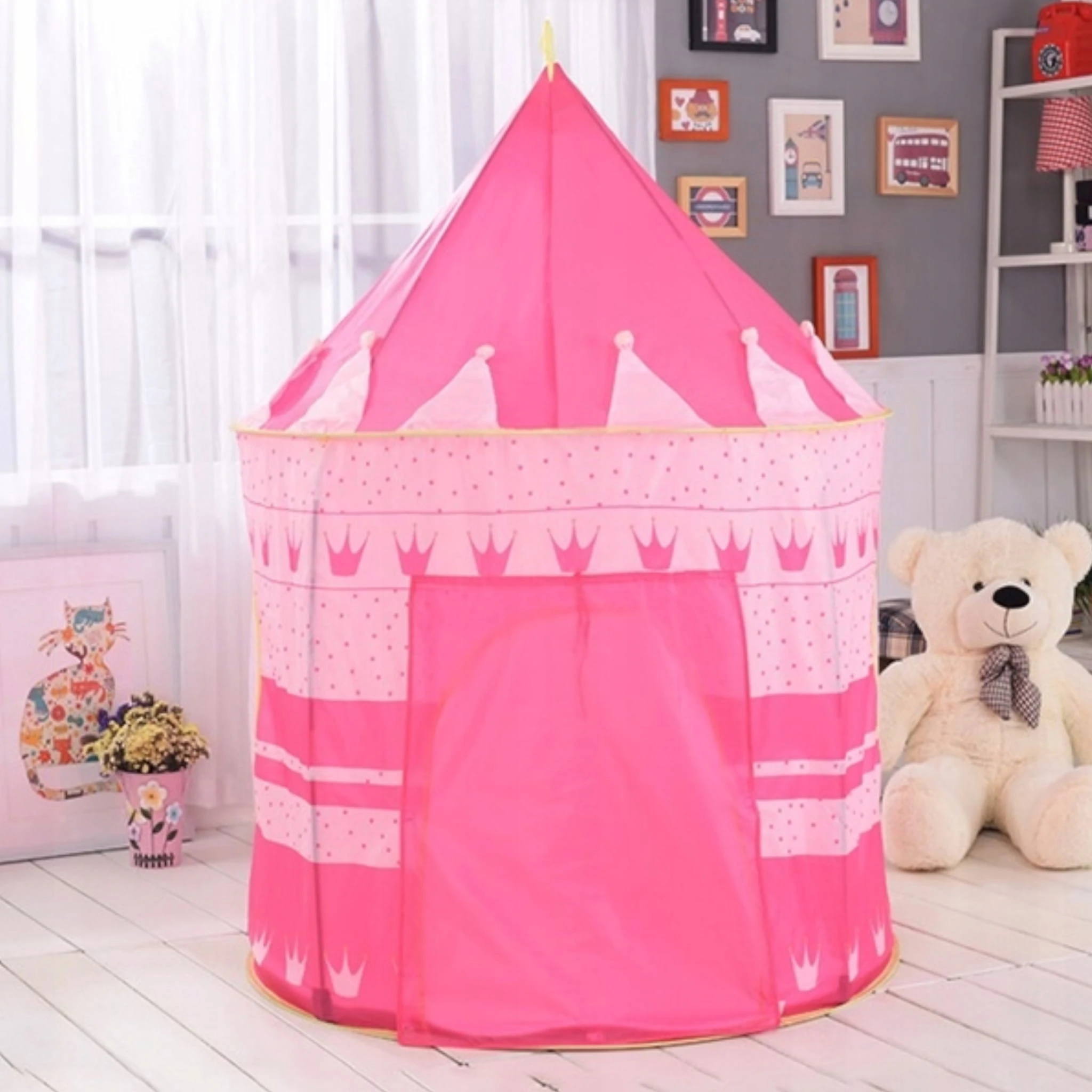 Namiot różowy z podłogą korona