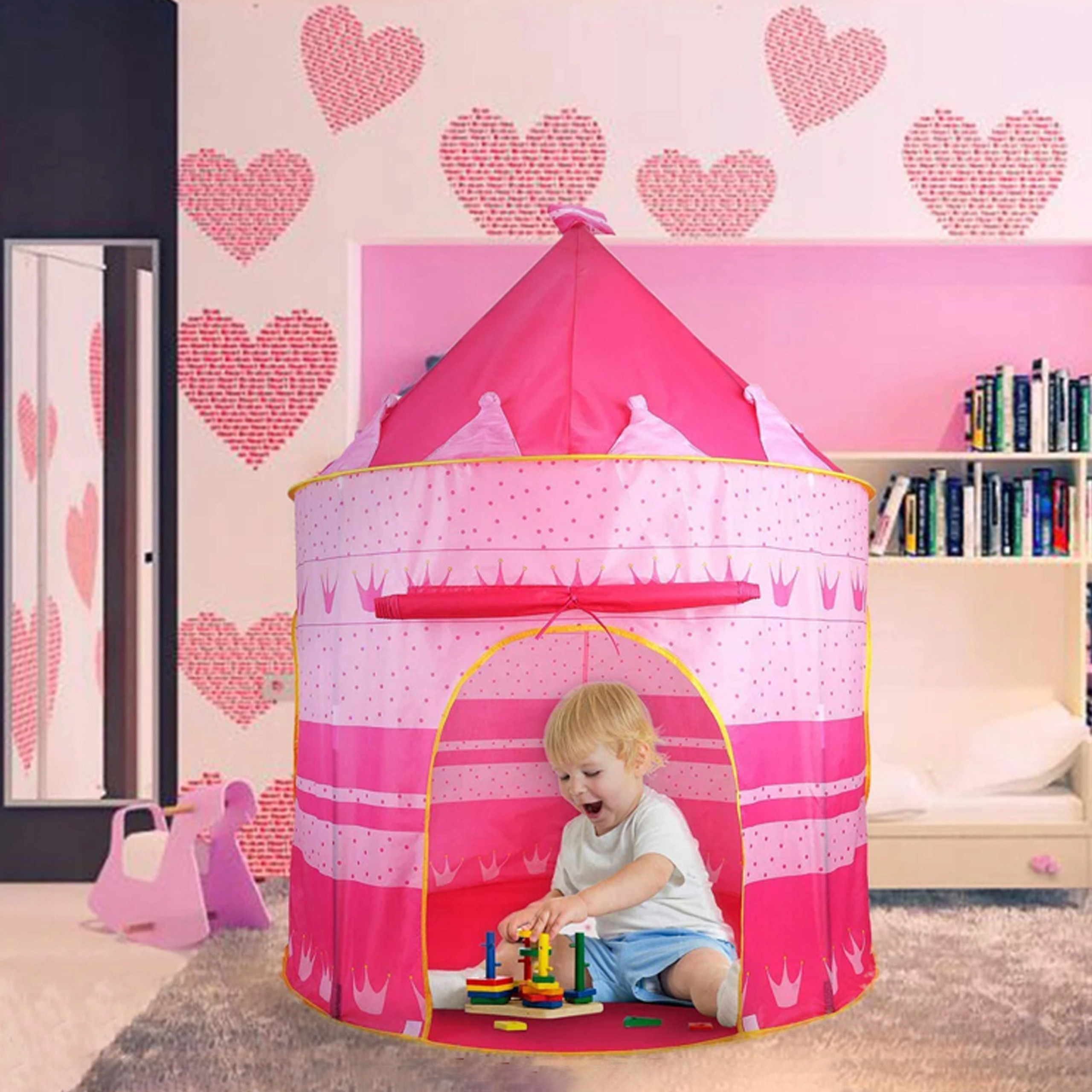Zabawa w namiocie to idealne miejsce do rozwijania wyobraźni i kreatywności poprzez wyobrażanie sobie niezwykłych podróży i przygód w magicznych miejscach czy nawet prostej zabawy w dom.