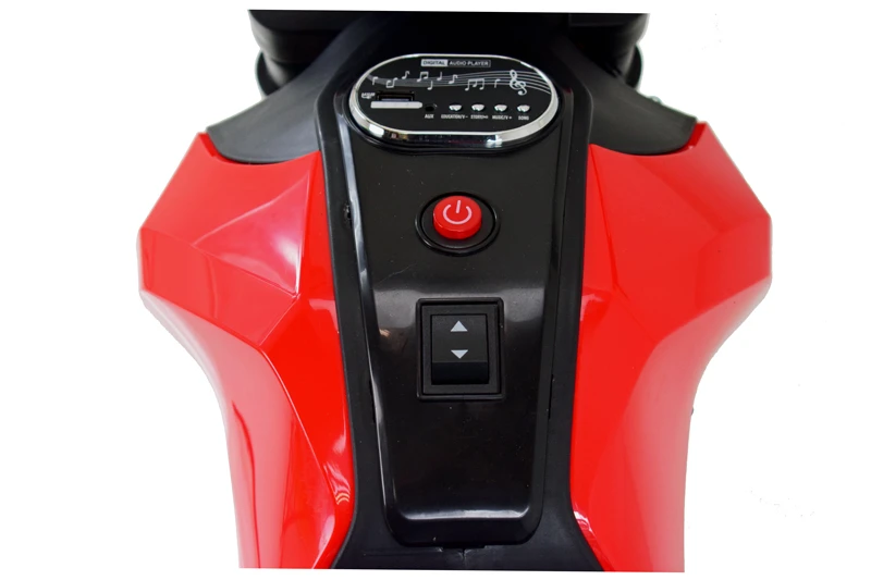Panel z dźwiękami ( dźwięki odpalania motocykla) z wejściem USB i AUX i oświetlenie pojazdu ( światła) umili o urozmaici zabawą.