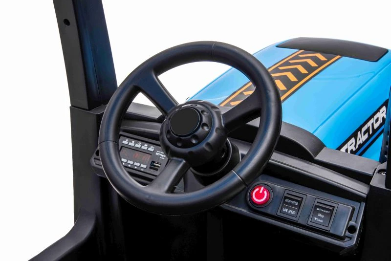 Wygląd traktora przypomina prawdziwe pojazdy z tej grupy. Duże koła zapewniają komfort jazdy, a wygodne siedzenie z pasami wygodną podróż.