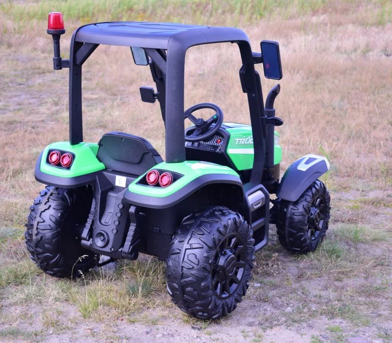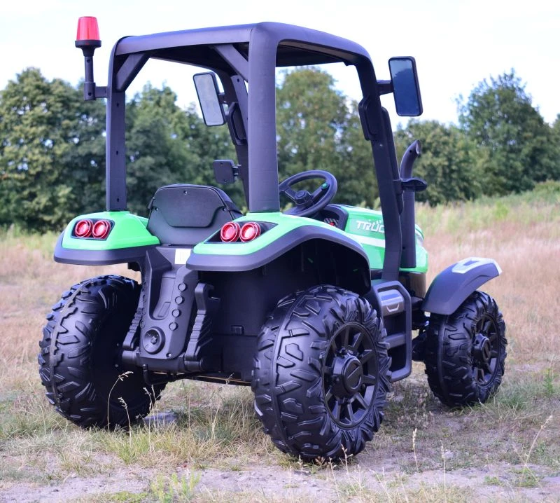 Wygląd traktora przypomina prawdziwe pojazdy z tej grupy. Duże koła zapewniają komfort jazdy, a wygodne siedzenie z pasami wygodną podróż.