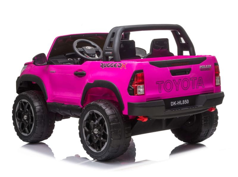 TOYOTA HILLUX W NAJMOCNIEJSZEJ WERSJI 24V - 480 WAT W WERSJI Z REALISTYCZNYM DŹWIĘKIEM SPORTOWEGO SILNIKA - super jakość wykonania. Auto z otwieranymi drzwiami, miękkimi kołami i miękkim siedzeniem z 5 punktowymi pasami. Napędzany 2 silnikami po 240 W "STRONG 2" Amortyzatory kół, sterowanie pojazdem za pomocą pilota . Panel posiada wejście na USB, slot na kartę oraz wejście MICRO - możliwość połączenia z telefonem, wskaźnik naładowania akumulatora w panelu. Wgrane są w nim utwory oraz dodatkowe zapowiedzi, pojazd mówi do dziecka. Pilot 2.4 Ghz z hamulcem i trzema prędkościami jazdy