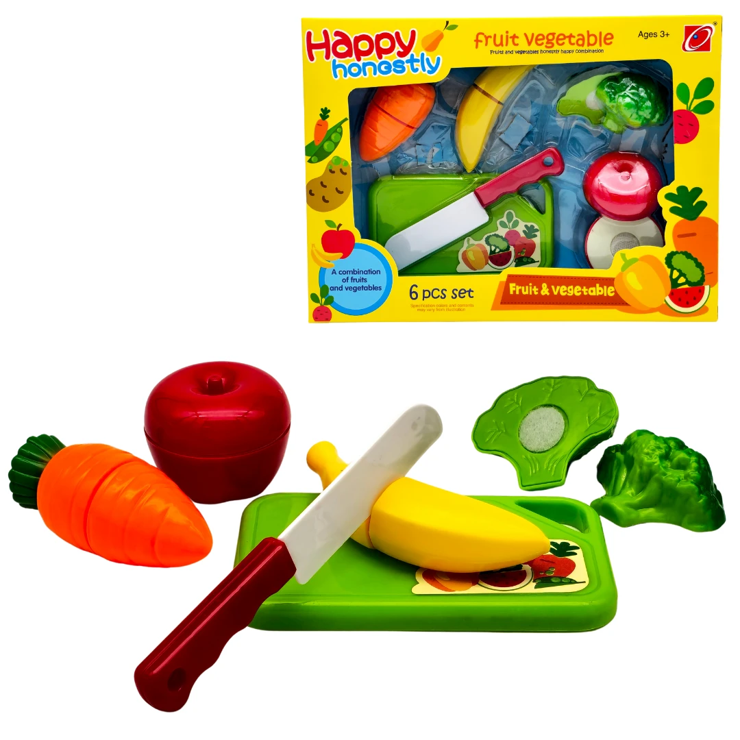 - zestaw kolorowych owoców – 4 precyzyjnie odwzorowane: banan, jabłko, pomarańcza i karambola oraz akcesora w postaci: deski do krojenia o wymiarach 12,5 x 7,5 cm i nóż o długości 14 cm umożliwia interesującą zabawę w dom lub w gotowanie; żywe i soczyste kolory przyciągną uwagę dziecka i zachęcą do zabawy,