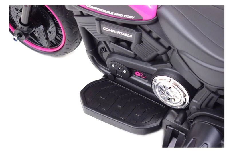 Dźwięk uruchamiania motocykla, wgrane piosenki oraz dźwięki urozmaicą zabawę. Dodatkową atrakcją jest RADIO FM, BLUETOOTH. Motor idealnie nadaje się jako pierwszy motorek dla dziecka.