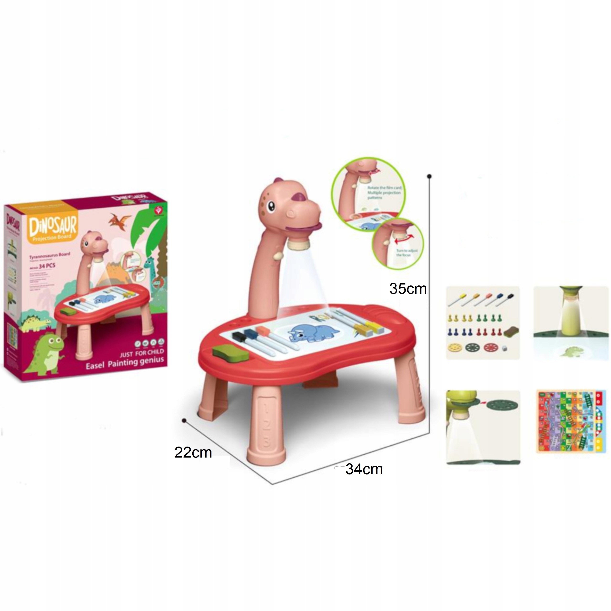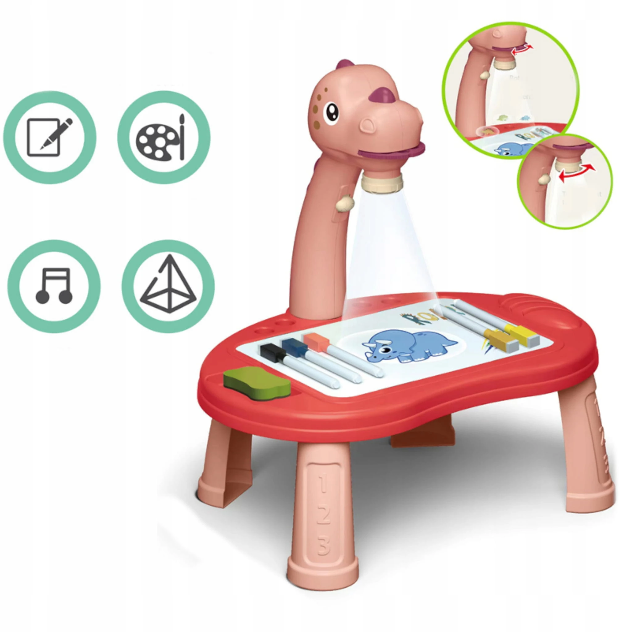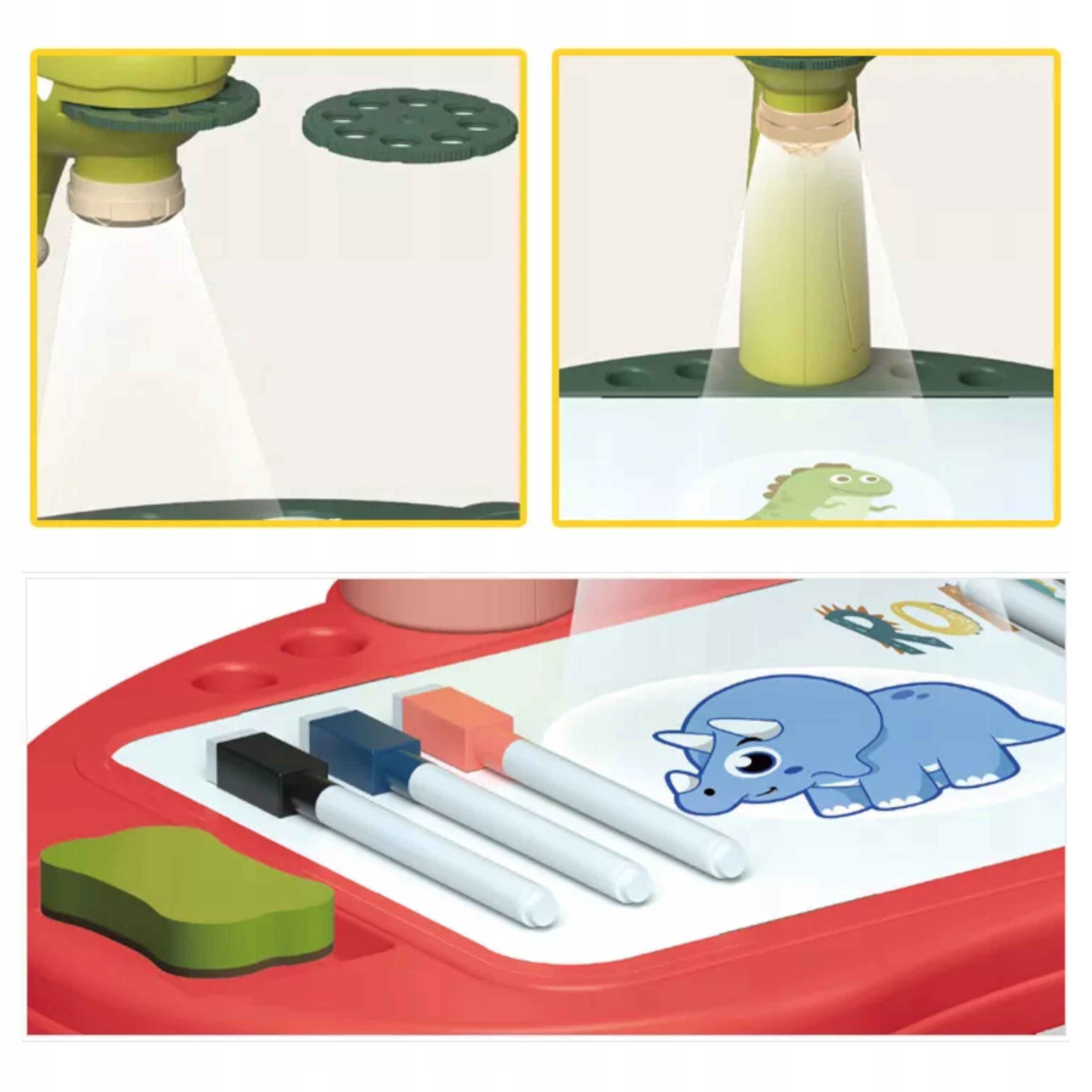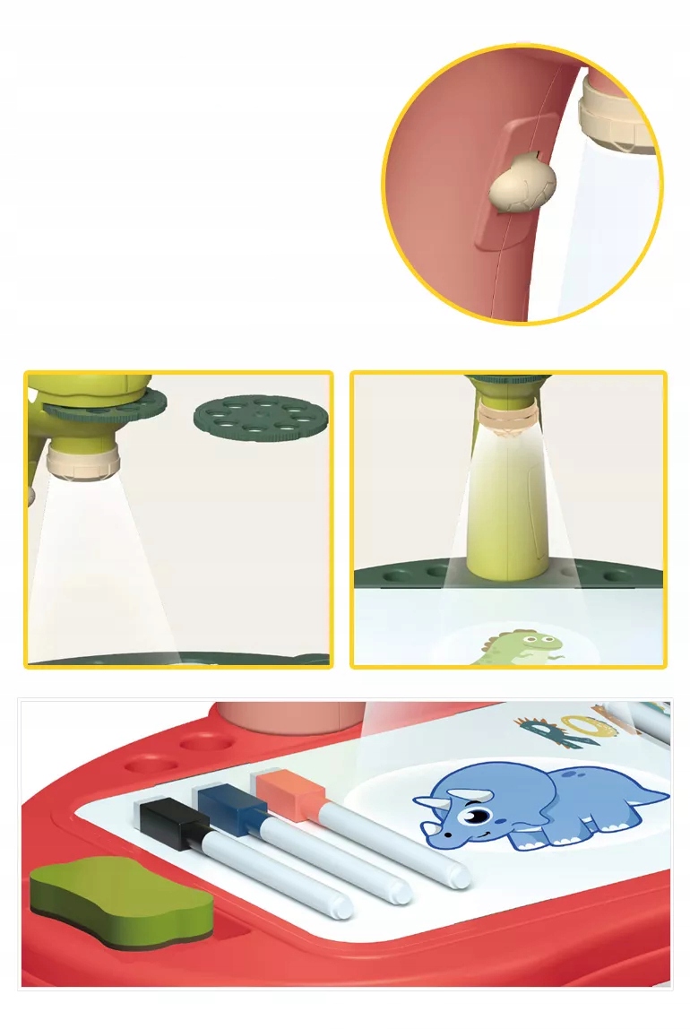 - Projektor z głową dinozaura z podstawą do rysowania i 4 nóżkami