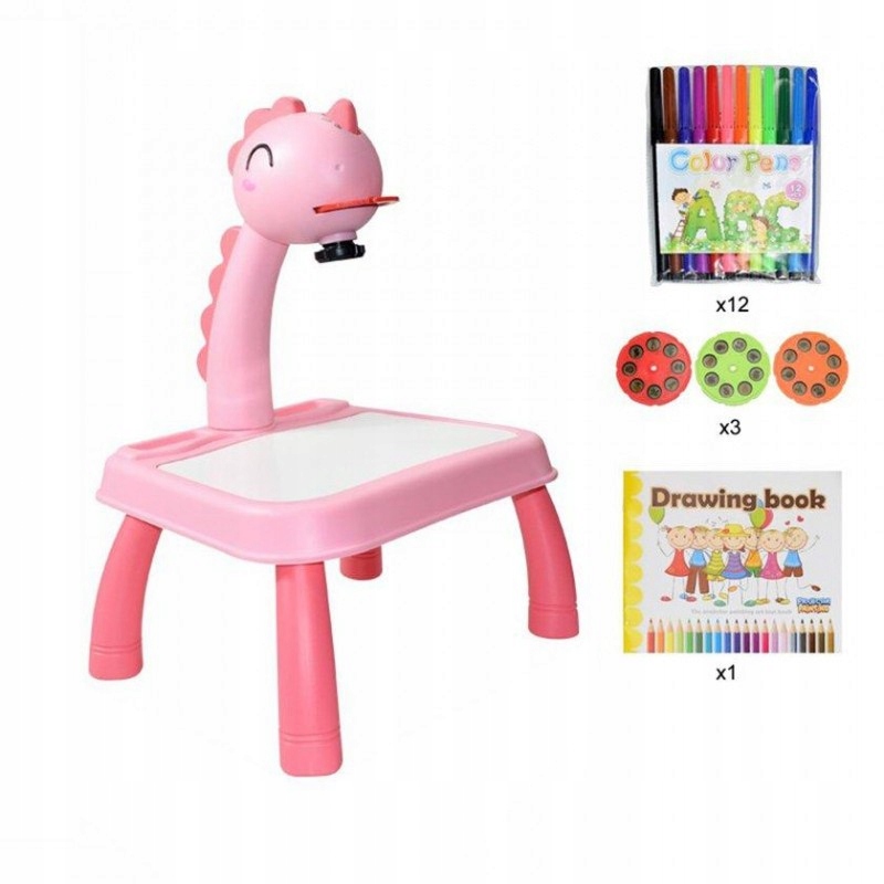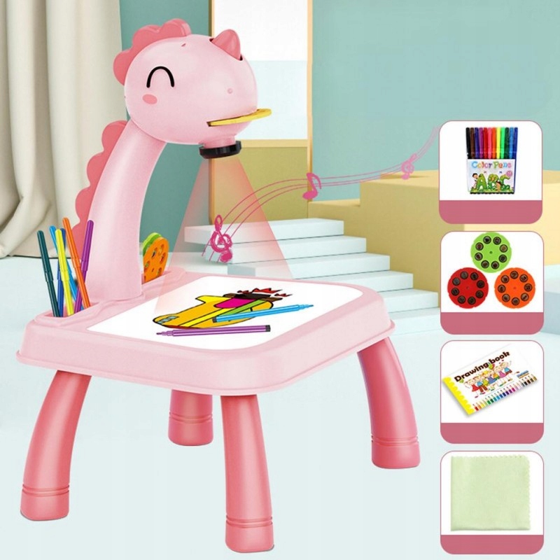 Projektor dinozaur Led rysunek artystyczny stół zabawki dzieci tabliczka do rysowania malowania biurko pisanie rzemiosło nauczanie edukacyjne narzędzia zabawka dla dziewczynki różowy