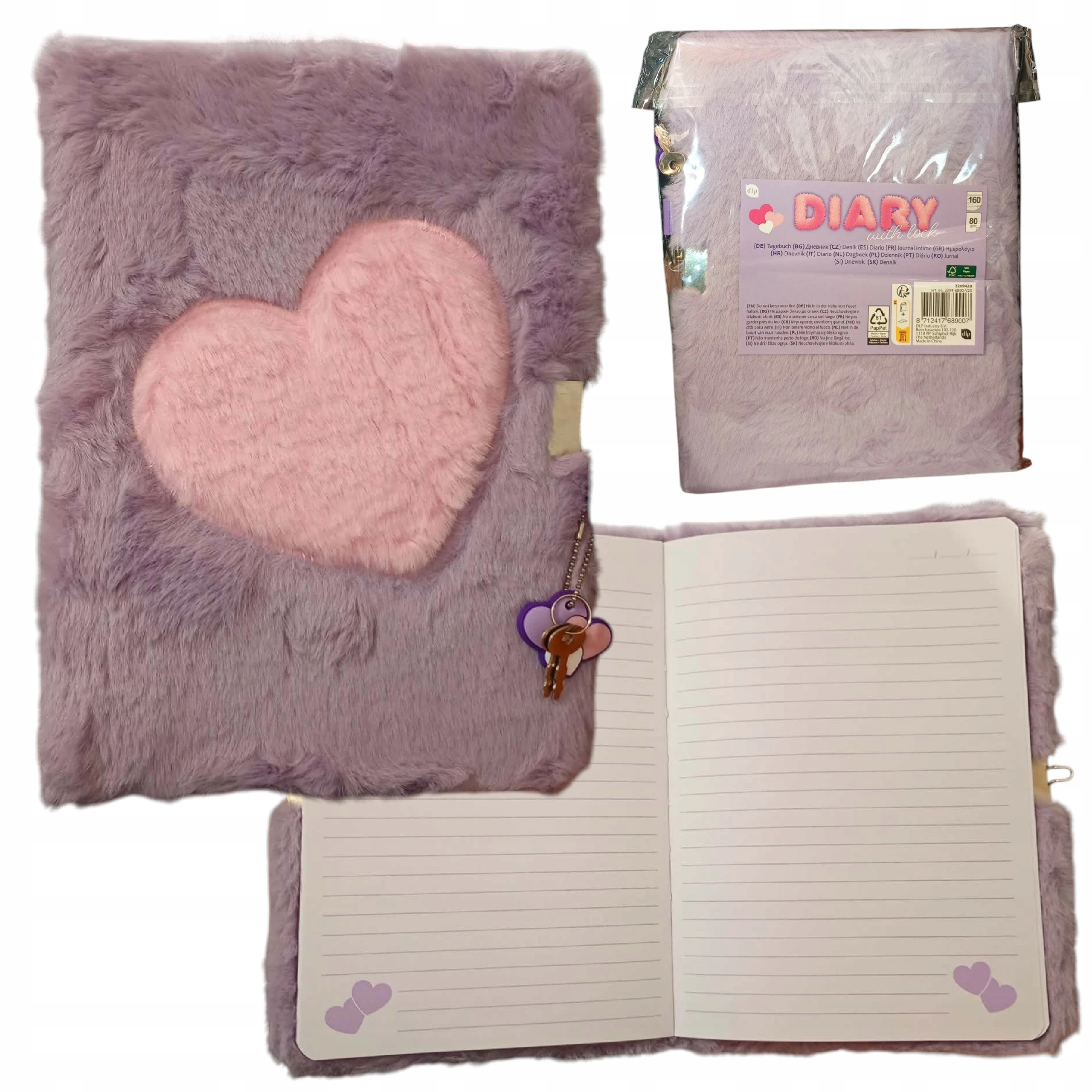 Uroczy pluszowy pamiętnik z zamkiem na kluczyk to idealne miejsce na zapisywanie myśli, wspomnień, sekretów i marzeń. Miękka futerkowa okładka z ozdobnym sercem sprawia, że notes wygląda wyjątkowo stylowo i przyciąga uwagę.