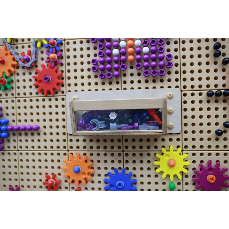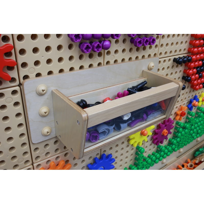 - - Pojemniczek jest montowany za pomocą śrubek Masterkidz bezpośrednio do ścianki STEM, dzięki czemu nawet dziecko poradzi sobie z montażem w dowolnym miejscu na tablicy.