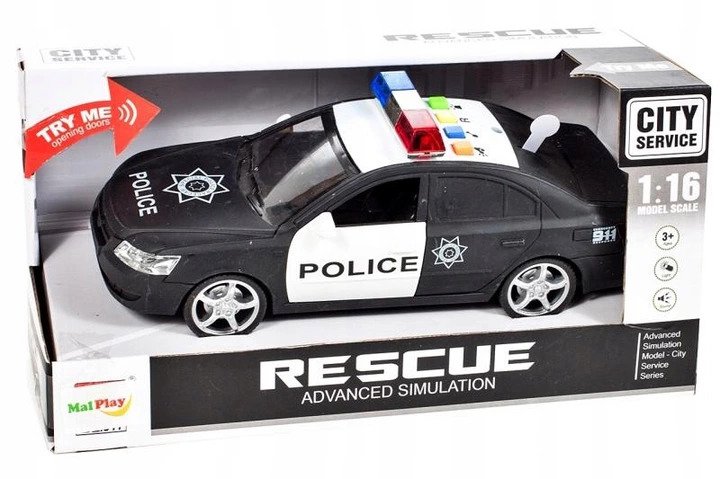 Samochód policyjny radiowóz otwierane drzwi dźwięki światła baterie 1:16 WY560A