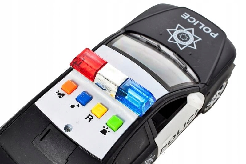 Policyjny radiowóz otwierane drzwi świecące koguty dźwięki auto policja