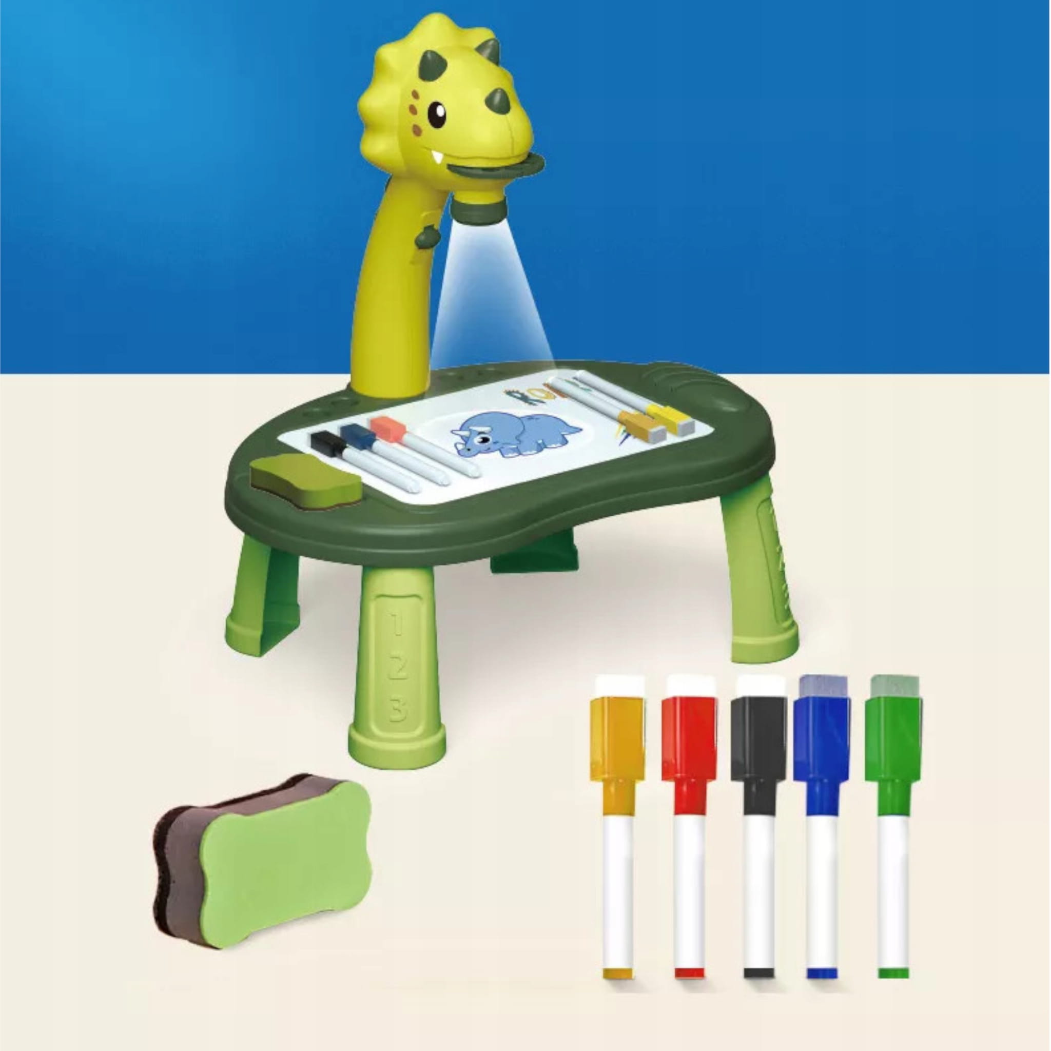 - Projektor w kształcie głowy dinozaura Triceratopsa z podstawą do rysowania i 4 nóżkami
