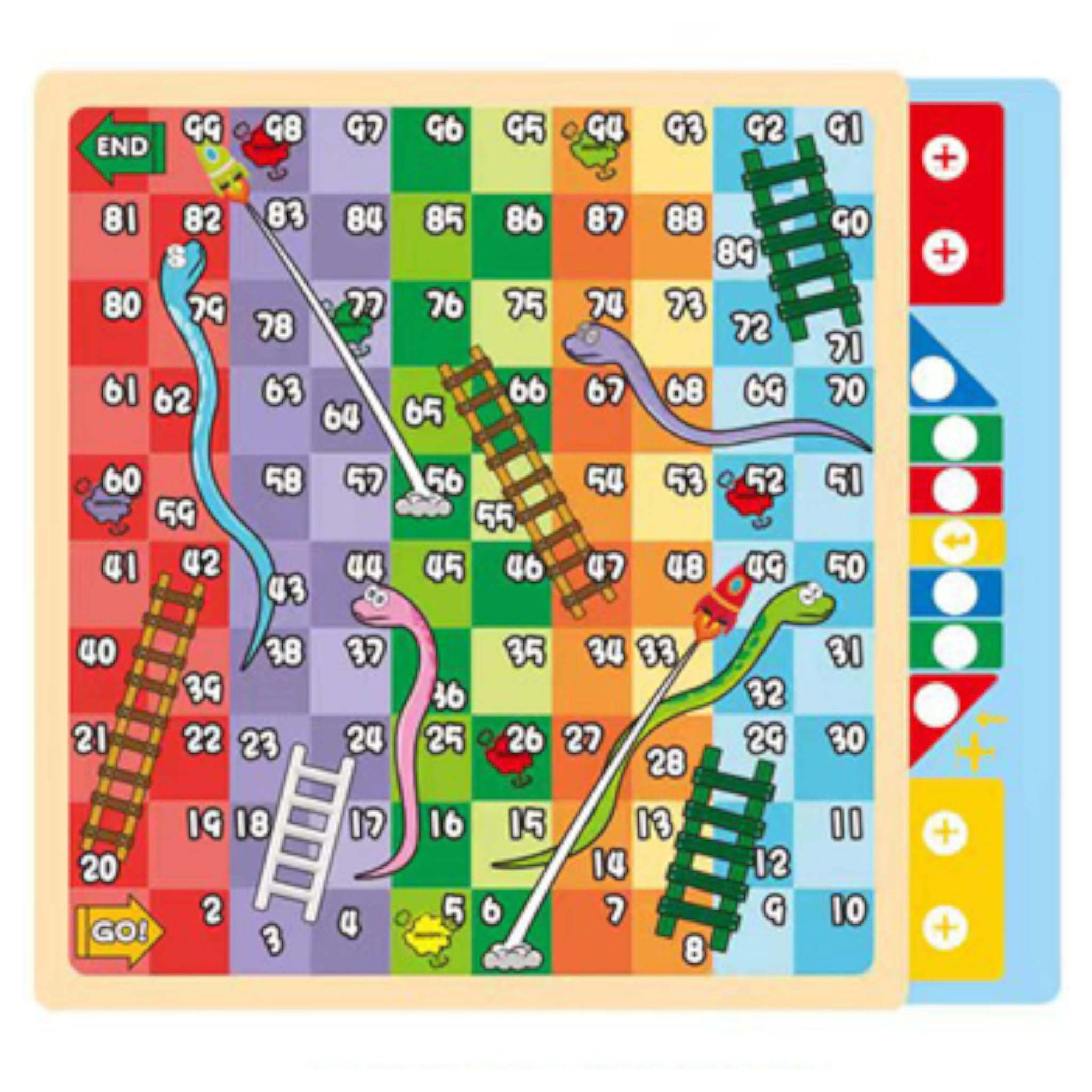 - Celem jest dotarcie jako pierwszy na pole z napisem „END”.