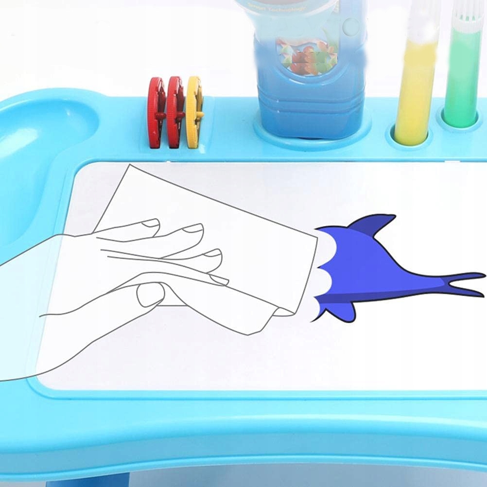 - Na podstawie można bezpośrednio malować mazakami, rysunki zmazujemy ściereczką, która również jest w zestawie.