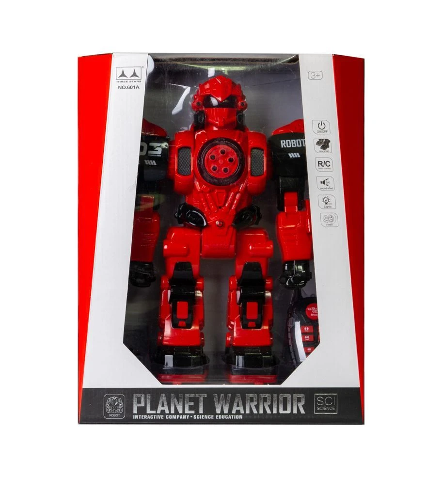 Interaktywny robot jest marzeniem każdego dziecka. Po jego uruchomieniu oczy robota oraz elementy umieszczone na klatce piersiowej i ramionach zaczynają się świecić. Robot porusza się we wszystkich kierunkach. Pilot umożliwia obrót w prawo i lewo oraz wybór dwóch trybów poruszania się w przód i tył: ślizg oraz kroki. Dodatkowo przy każdej akcji robot wydaje dźwięki. Po naciśnięciu przycisku „DANCE” na pilocie zostaje uruchomiona melodia, do której robot sam zaczyna się poruszać oraz tańczyć. Przycisk „SHOOT” inicjuje wyrzut pocisków z klatki piersiowej robota. Przycisk „PAUSE” zatrzymuje aktualnie działającą opcję. Dzięki wszystkim powyższym cechom zestaw zapewni obdarowanemu wiele godzin cudownej i kreatywnej zabawy! Produkt zapakowany jest w kartonowe pudełko, które świetnie nadaje się na prezent.