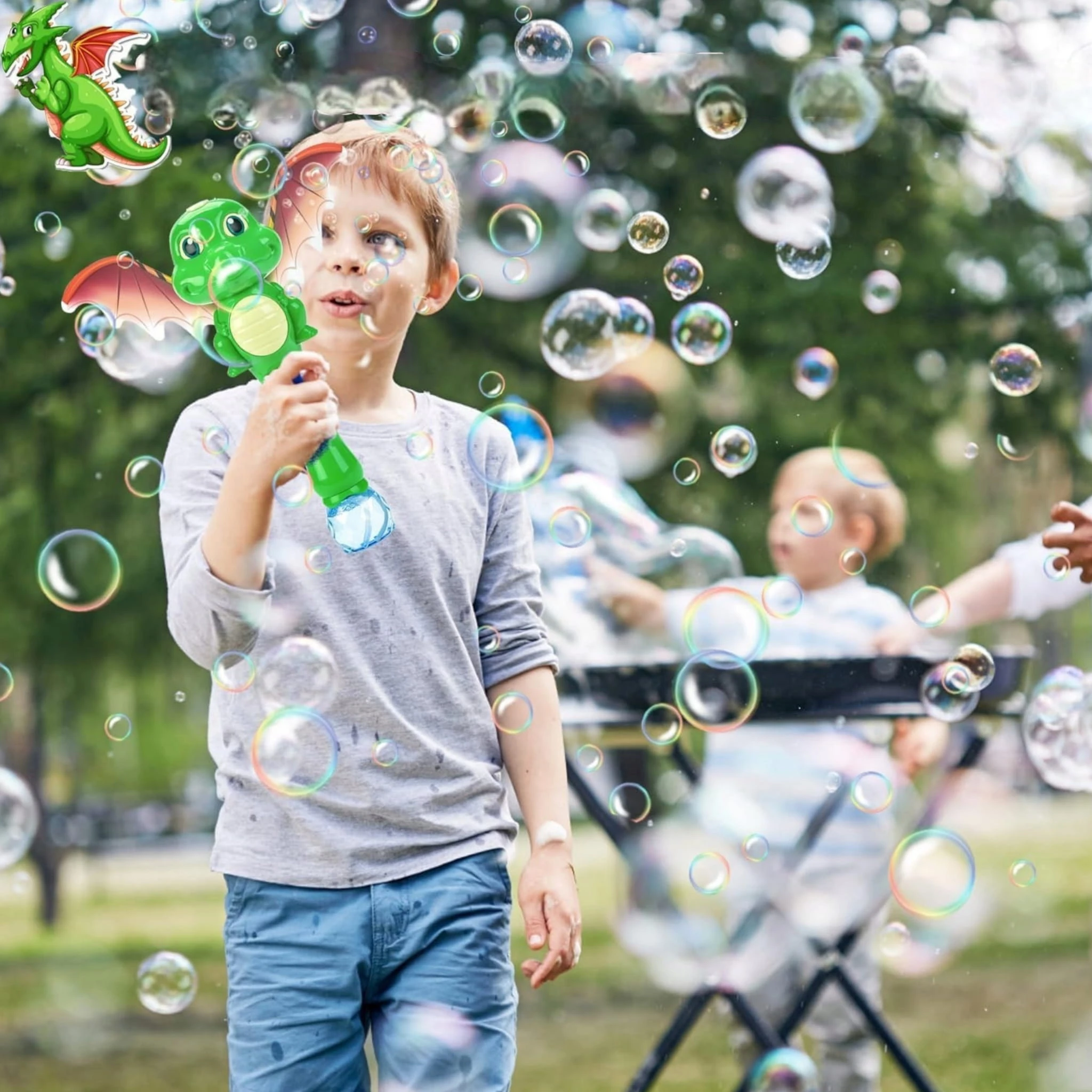 - ✅ Zachęca do aktywności fizycznej – dzieci biegają za bańkami, skaczą, machają rękami – to forma ruchu i zabawy na świeżym powietrzu.