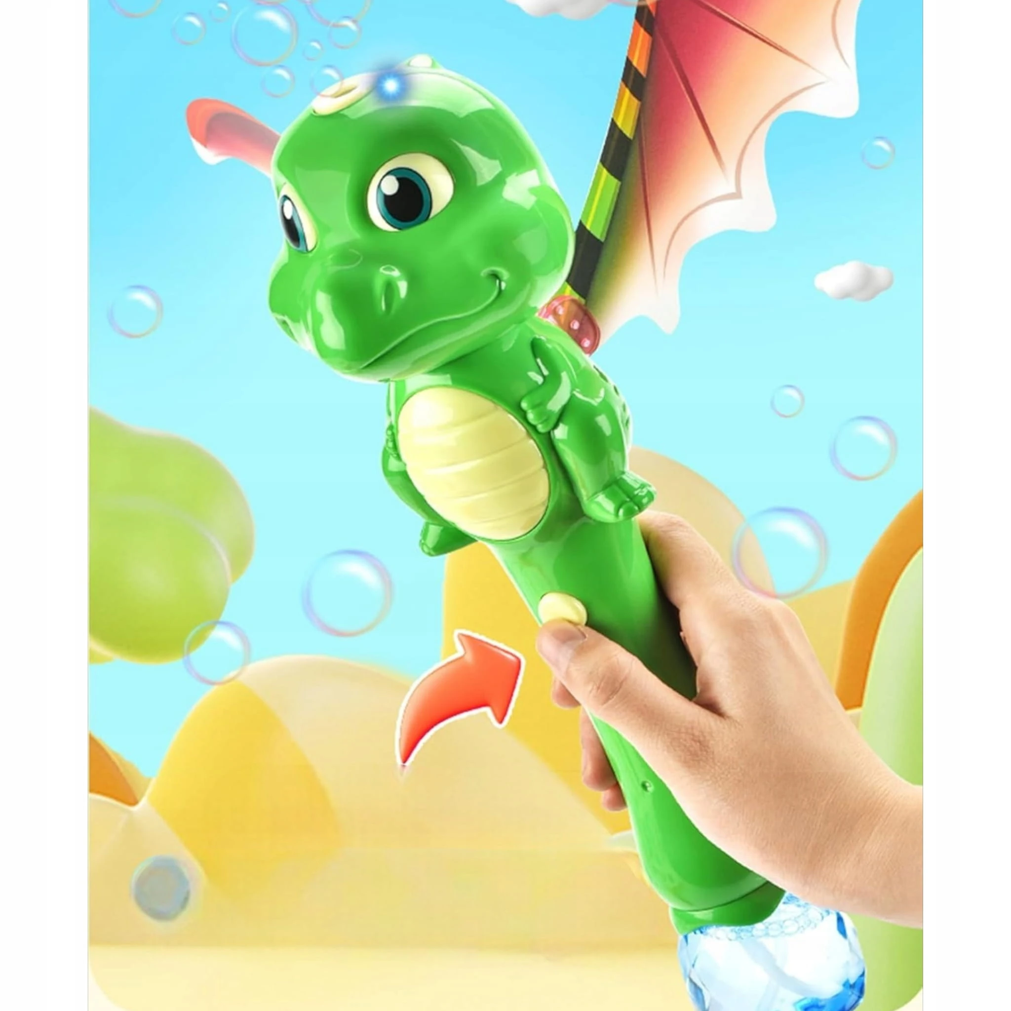 Różdżka do baniek w kształcie dinozaura to idealna zabawka, która łączy ruch, światło i wyobraźnię w jedno fascynujące doświadczenie.