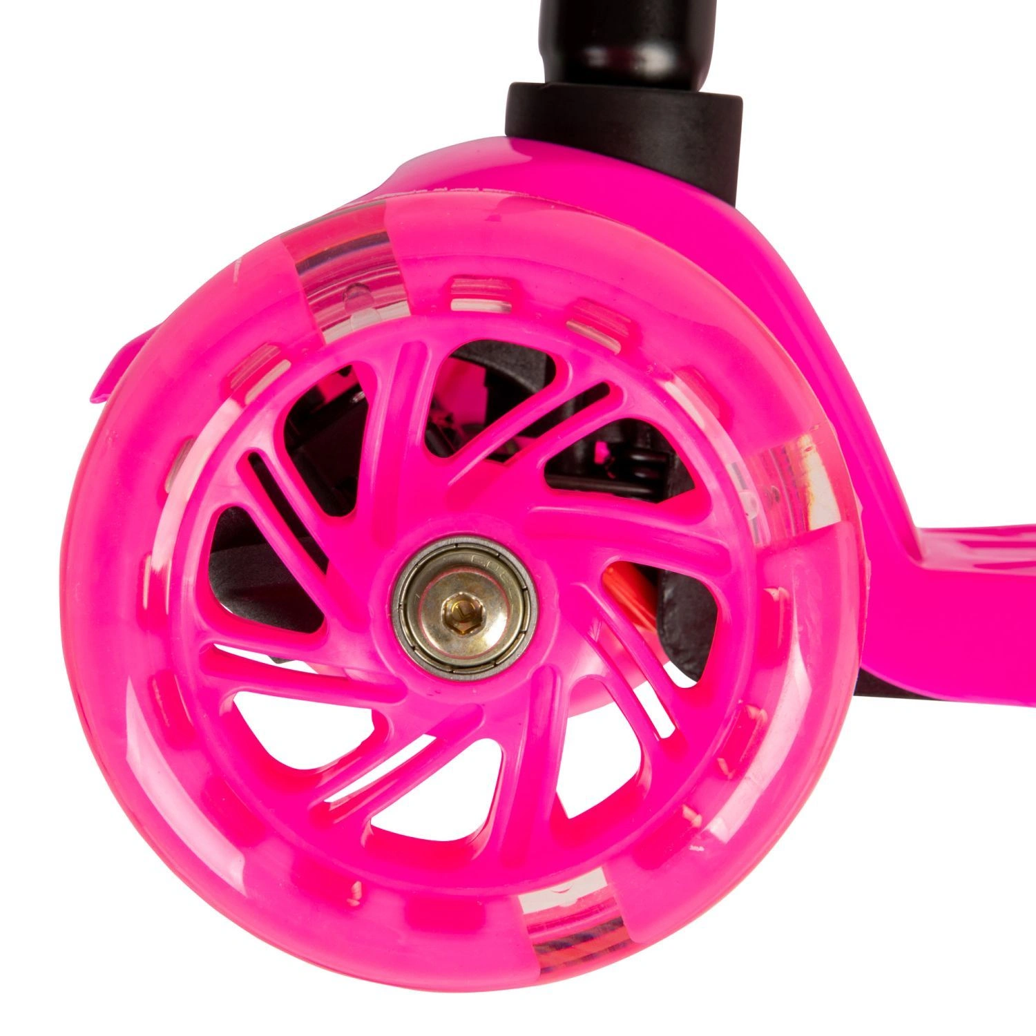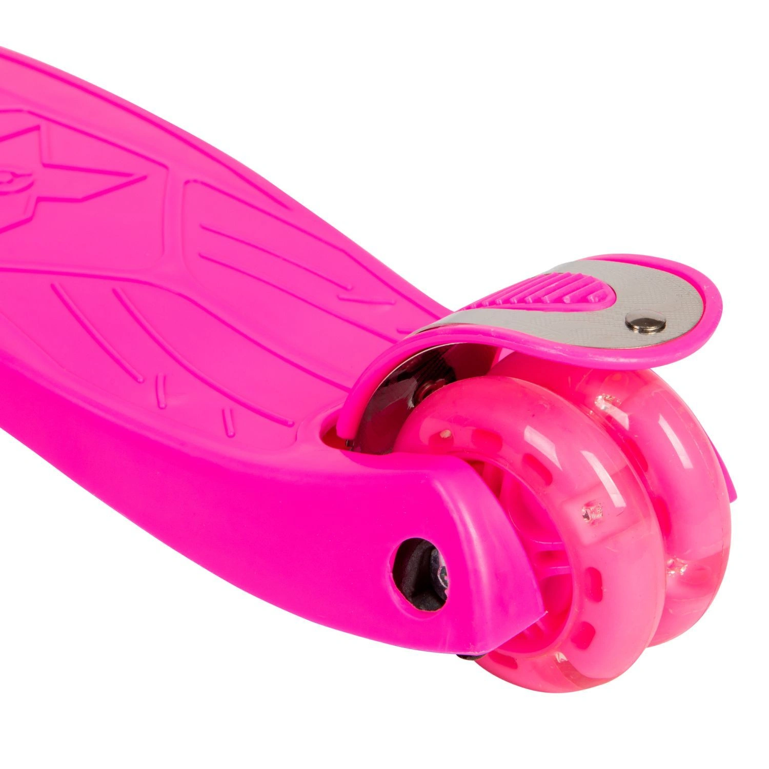Różowa balansowa hulajnoga składana trójkołowa ze świecącymi kołami LED