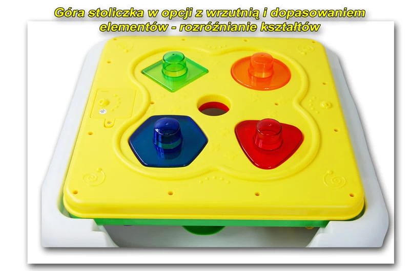 Stoliczek jest dwustronny co daje wiele możliwości zabawy. Dodatkowo może być pojemnikiem na zabawki.