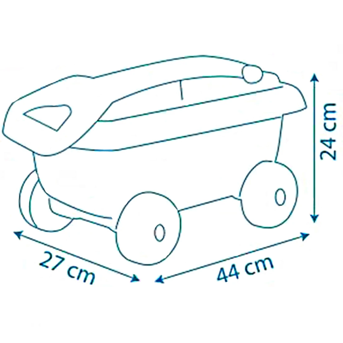 - - zestaw składa się z kolorowego wózka z ergonomicznym uchwytem do ciągnięcia, który pomieści zabawki i akcesoria do piasku,