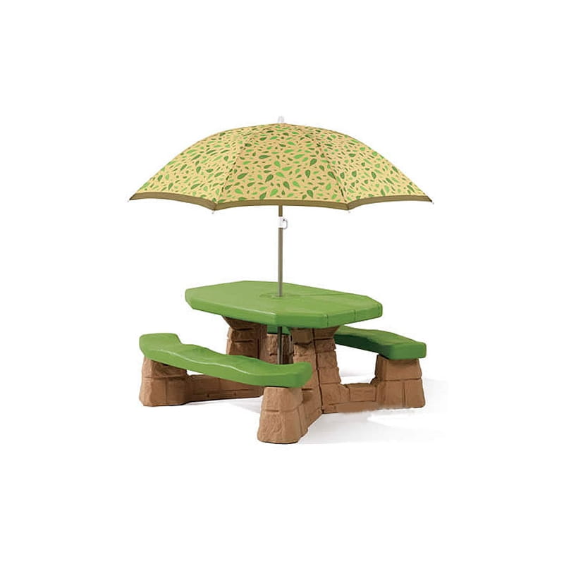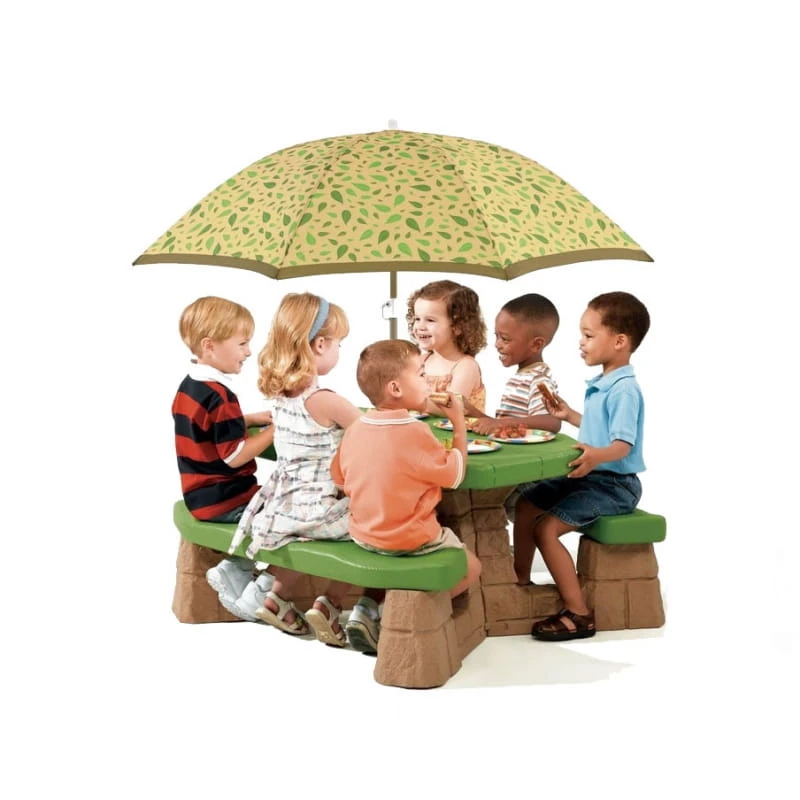 Stolik piknikowy z parasolem należy do serii zabawek ogrodowych Naturally Playful renomowanej amerykańskiej firmy STEP2. Stolik świetnie się sprawdza w upalne dni przy pikniku i zabawie w ogrodzie. Dwie długie ławki zapewniają wygodne siedziska aż dla 6 dzieci jednocześnie, a szeroki blat tworzy dużą przestrzeń do zabawy i spożywania posiłków.