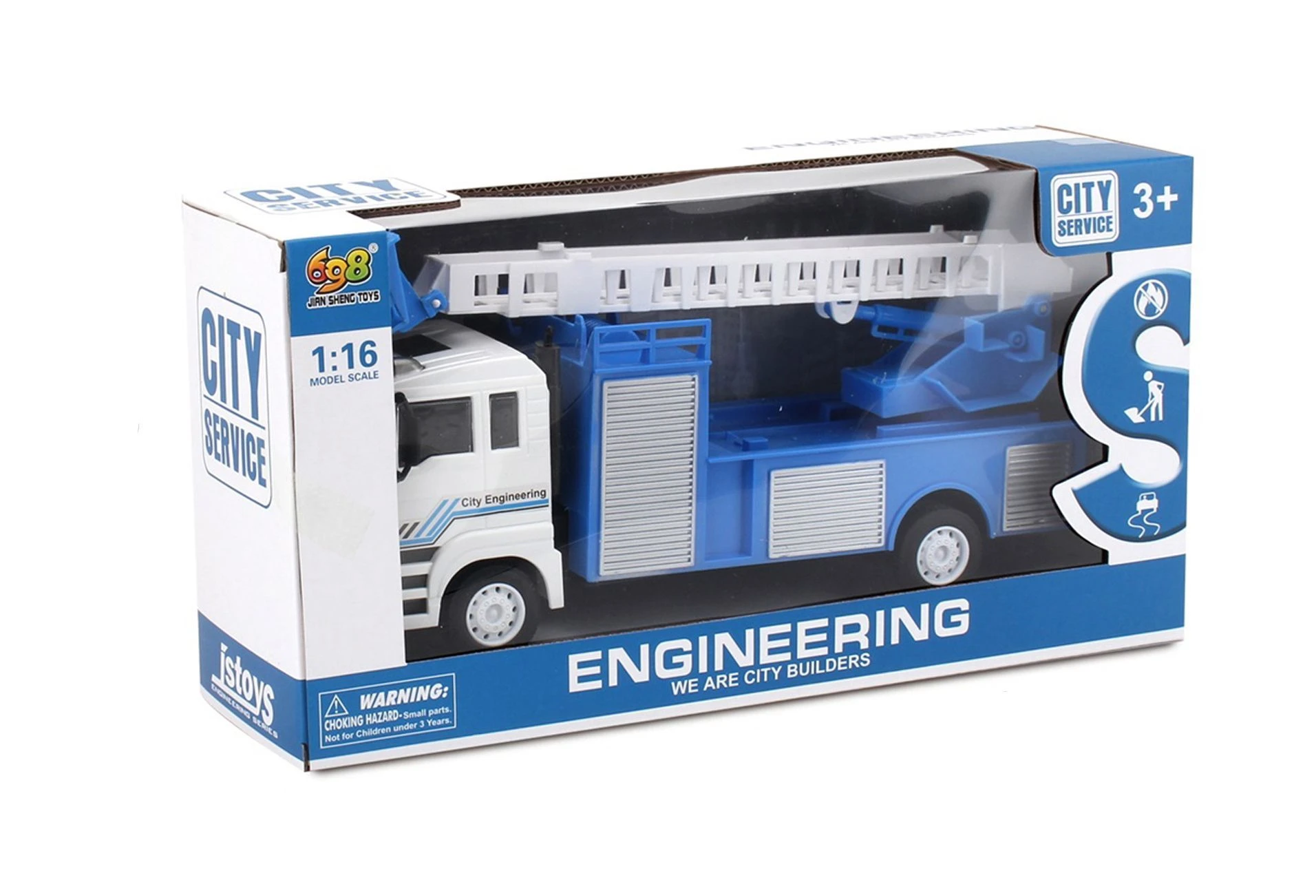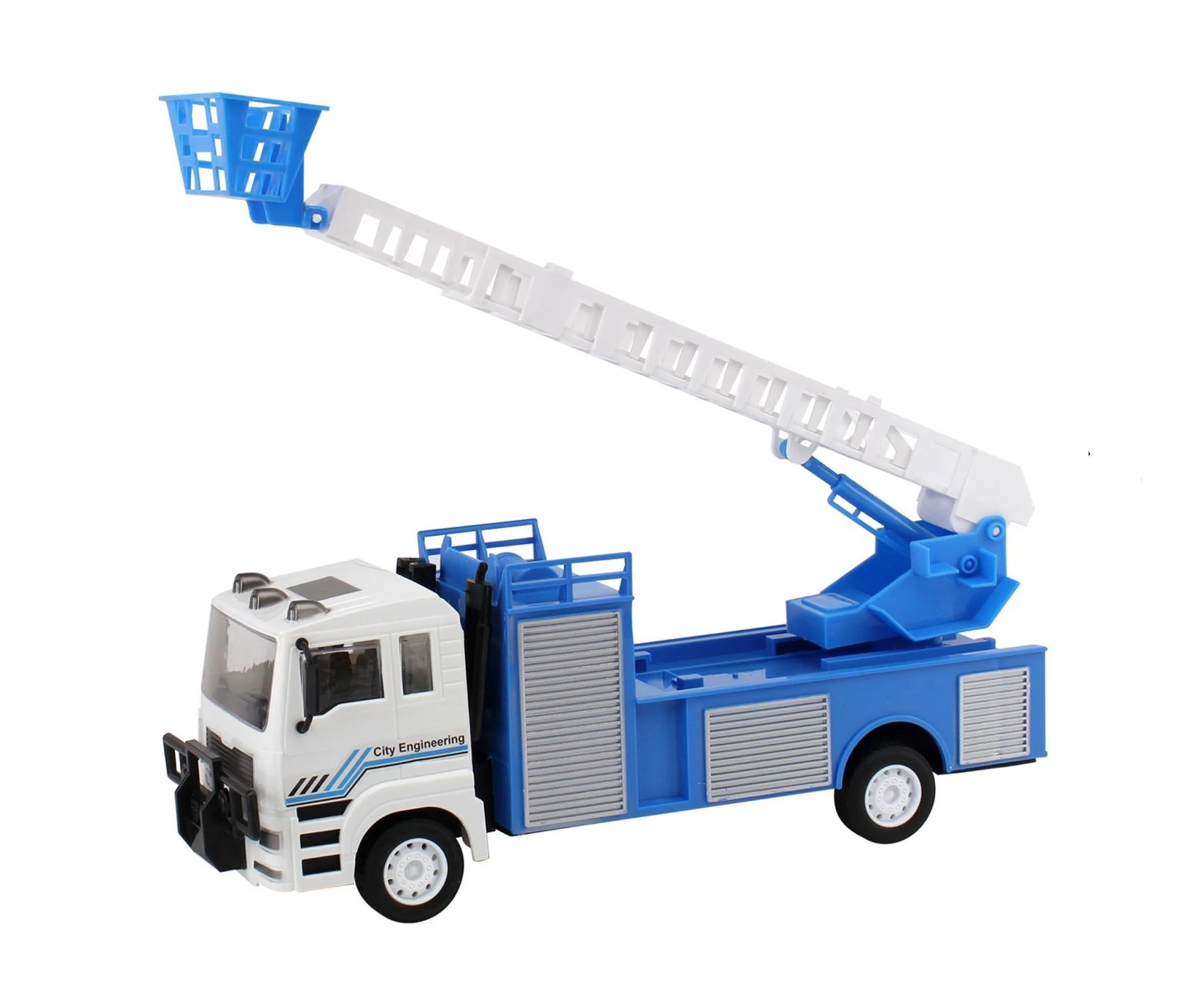 Samochód z kategorii dźwigów doskonale sprawdzi się w służbach miejskich i będzie idealnym prezentem dla każdego małego miłośnika ciężarówek. Pojazd posiada napęd typu friction. Dodatkową atrakcją jest ruchoma drabina z dopinanym koszem którym można sterować w górę i w dół . Zabawka wykonana została z wysokiej jakości tworzywa z dbałością o detale, sprawiając że dźwig będzie długo cieszył swojego fana.