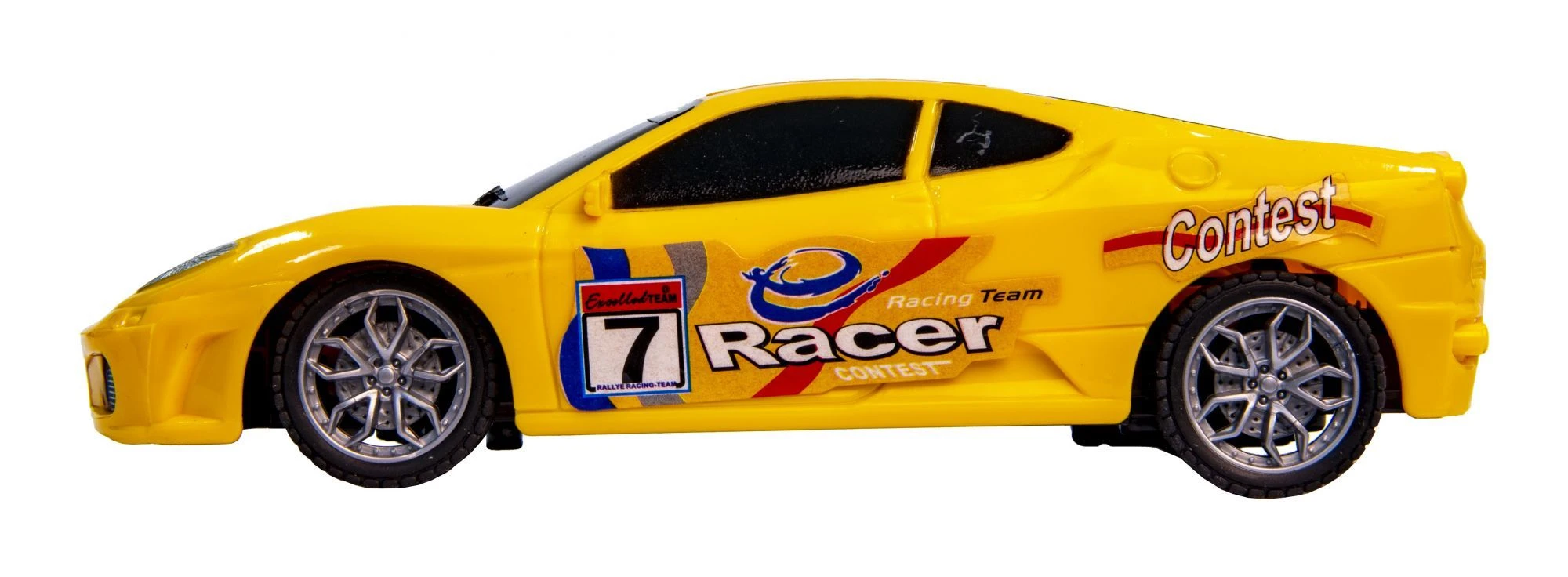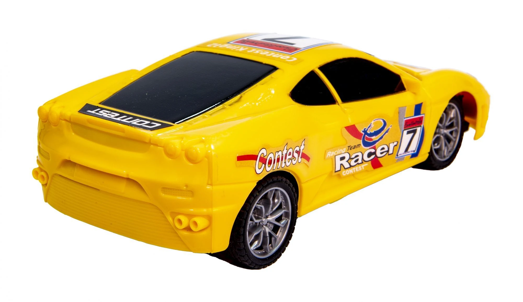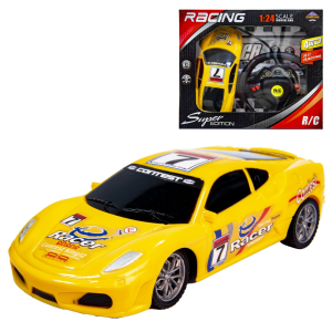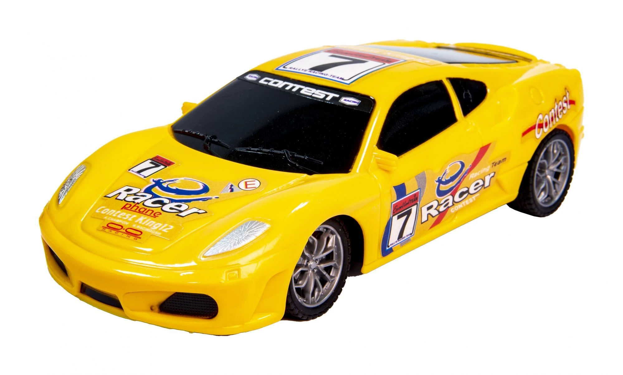 Starannie wykonany, zdalnie sterowany samochód sportowy zapewni niezwykłe emocje zarówno dziecku, jak i dorosłemu. Poczuj się jak prawdziwy kierowca rajdowy i zasiądź za kierownicą sportowego auta! Zabawka jeździ we wszystkich kierunkach, a do jej sterowania służy prosty w sterowaniu pilot w kształcie kierownicy.