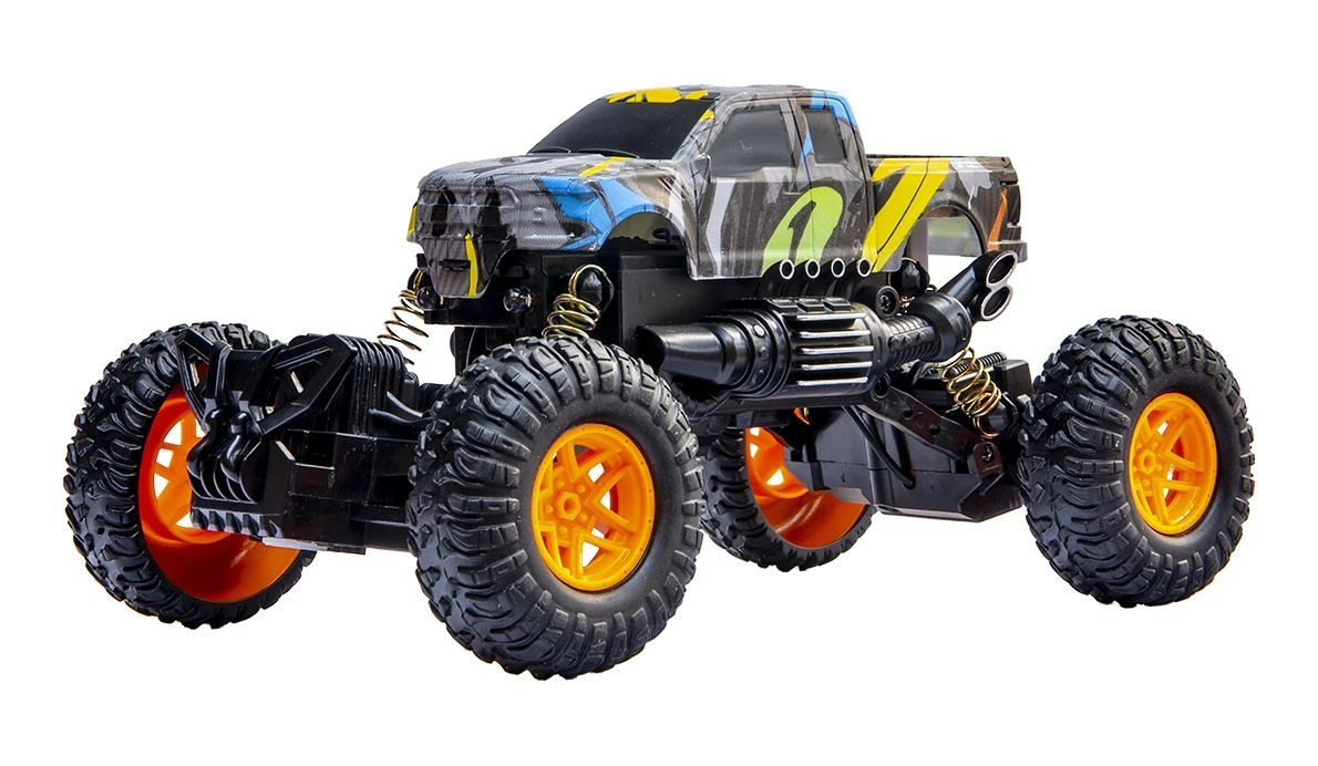 Zdalnie sterowany samochód, który sprawdzi się zarówno u młodszych jak i starszych użytkowników. Zabawka jeździ we wszystkich kierunkach, a do jej sterowania służy prosty w obsłudze pilot. Pojazd posiada wysokie, niezależne zawieszenie, sprężyny i duże gumowe, terenowe koła, dzięki czemu porusza się bez żadnych przeszkód na wszystkich terenach. Zdalne sterowanie pilotem daje nieograniczone możliwości jazdy. Dodatkowo wyposażony jest w światła LED z przodu pojazdu. Dzięki wszystkim powyższym cechom zestaw zapewni obdarowanemu wiele godzin cudownej i kreatywnej zabawy! Produkt zapakowany jest w kartonowe pudełko, które świetnie nadaje się na prezent.