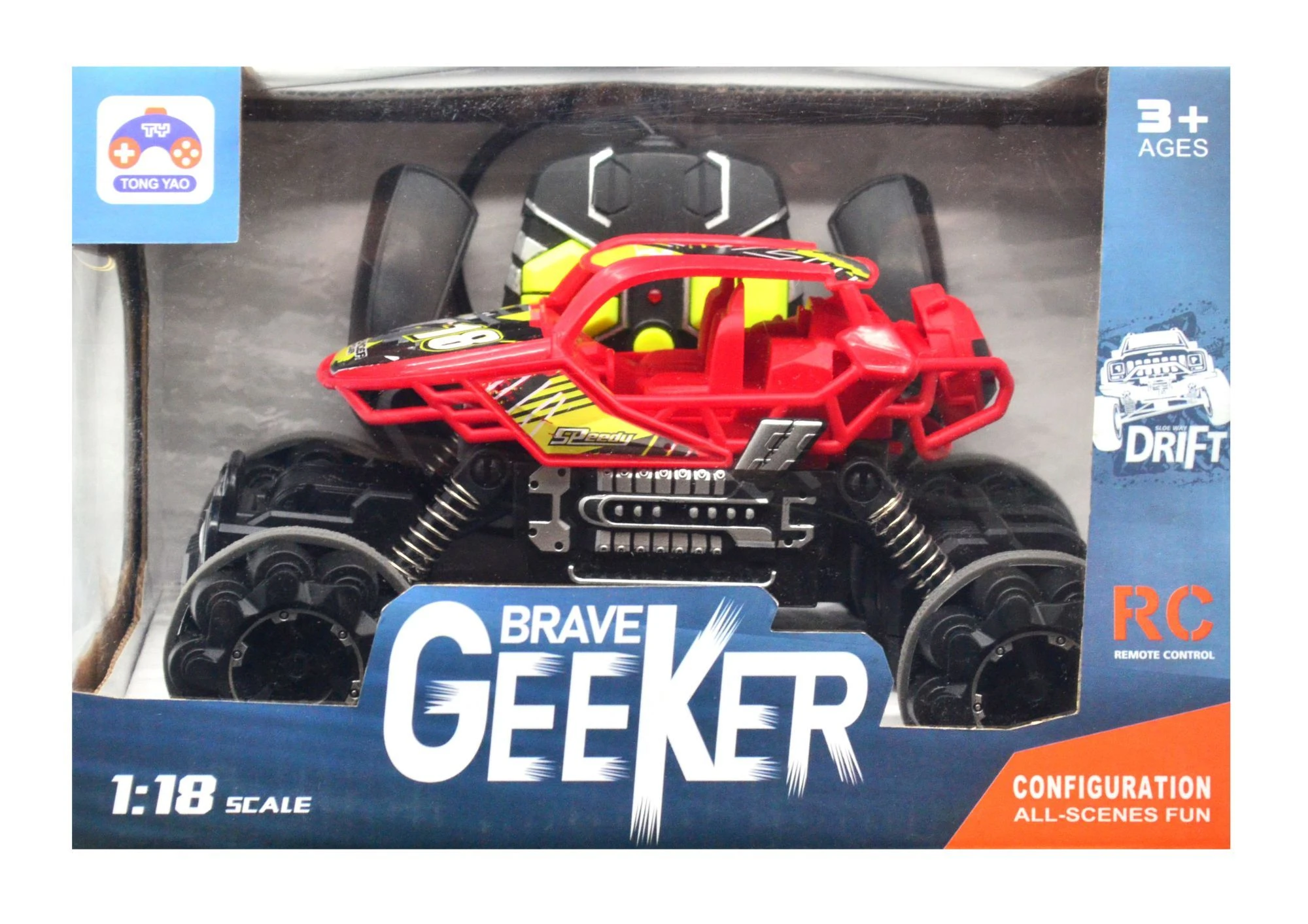 Model wykonany w skali 1:18, zaprojektowany do poruszania się po każdej powierzchni. Dzięki napędowi na tylne koła auto wjedzie praktycznie wszędzie - trawa, błoto, czy kamienista droga nie stanowią dla niego problemu. Wytrzymałe koła zapewniają doskonałą przyczepność. Auto jest bardzo mocne i bez trudu pokonuje przeszkody. Pozwala to również na stabilną jazdę i jeszcze skuteczniejsze pokonywanie stromych podjazdów. Trymer kierunkowy umieszczony na spodzie auta pozwala dokonywać kalibracji kół.