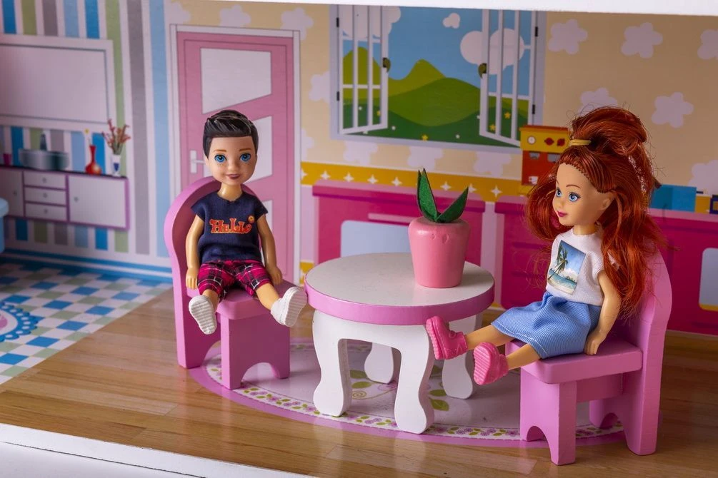 Staranne wykonanie oraz stabilna konstrukcja gwarantują beztroską i bezpieczną zabawę na długie godziny. Domek przeznaczony jest do samodzielnego montażu. Lalki widoczne na zdjęciach zostały użyte poglądowo i nie wchodzą w skład zestawu.