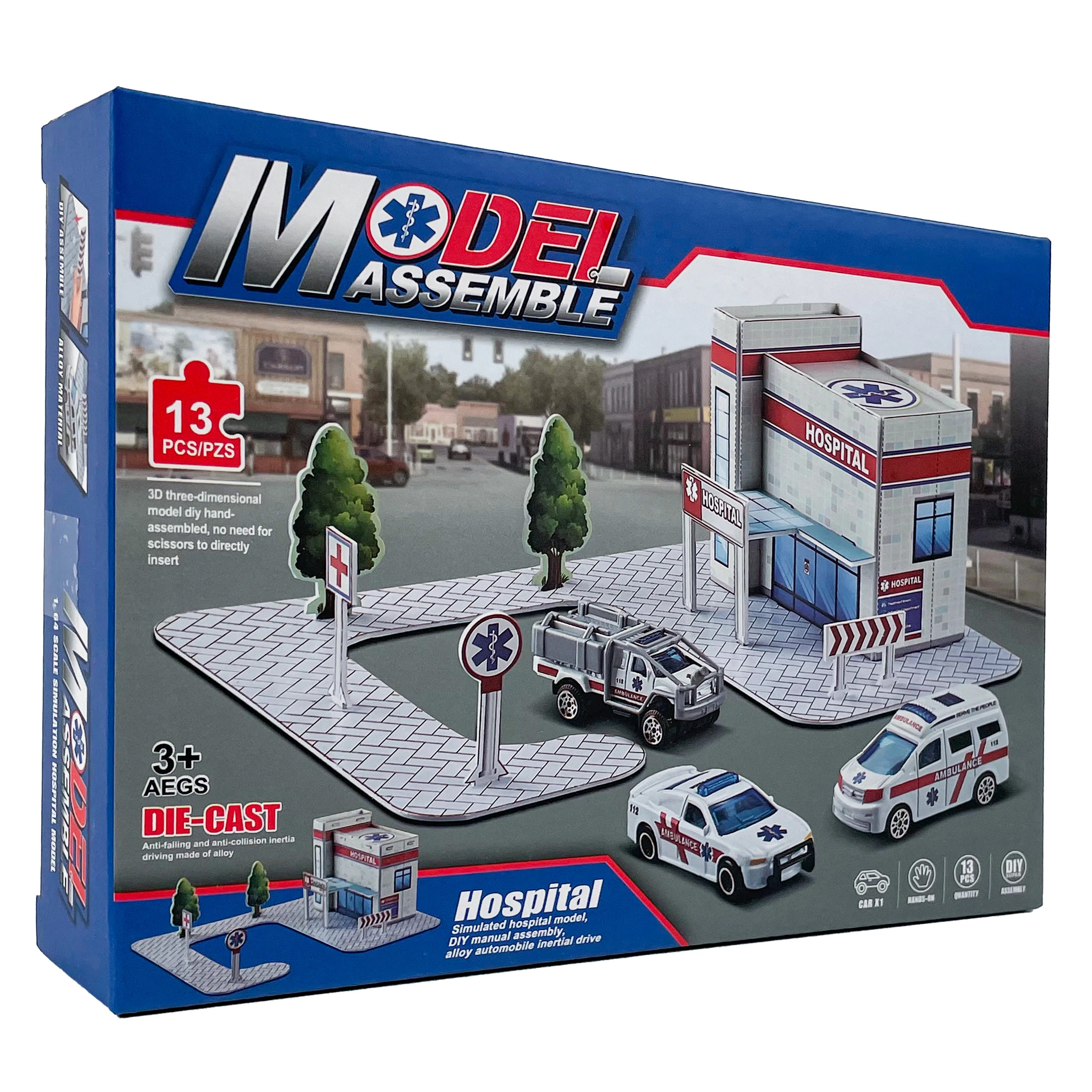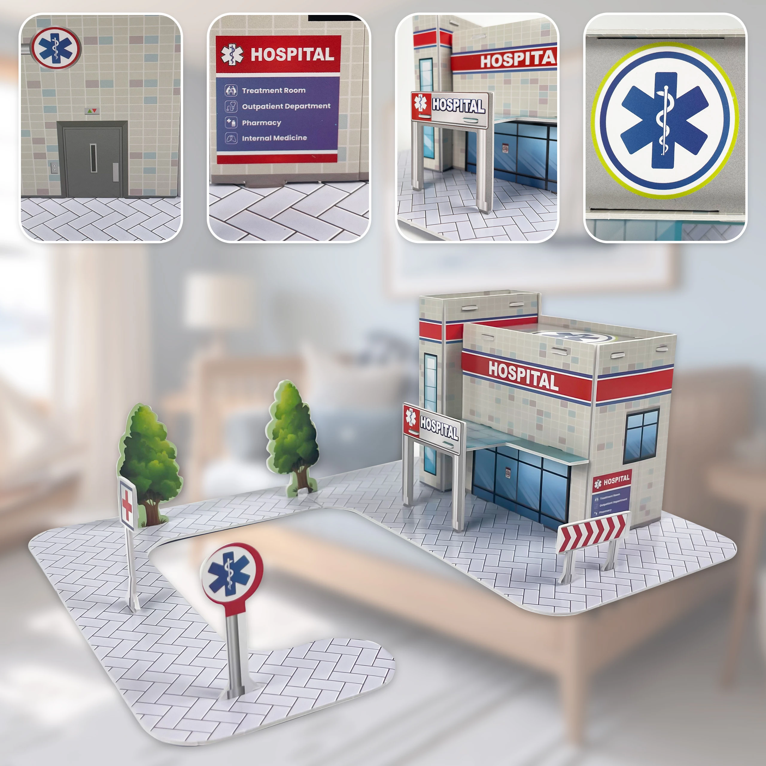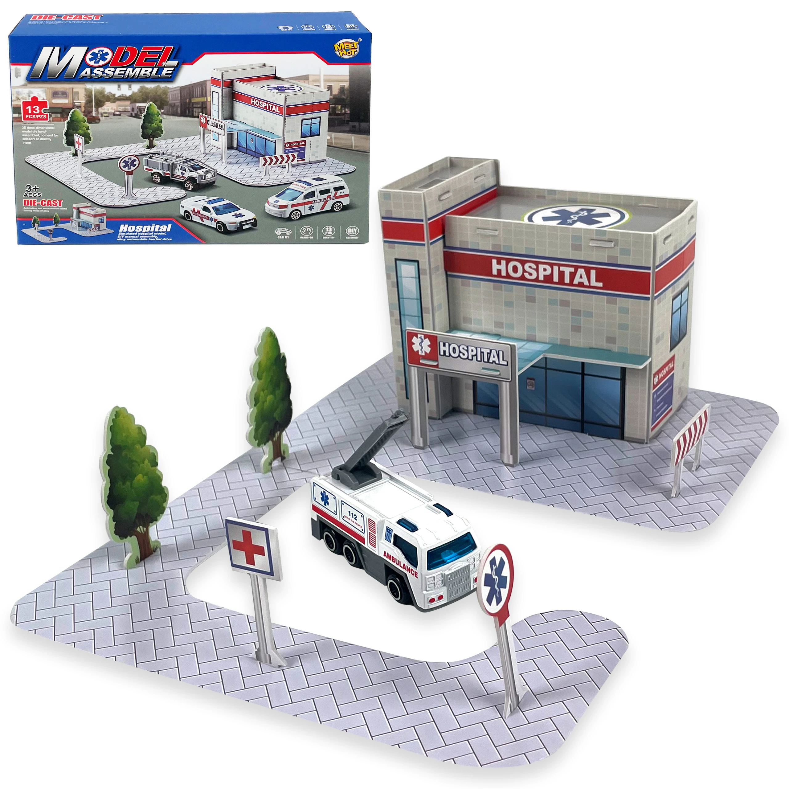 Zestaw 3D "Hospital" to edukacyjna zabawa w stylu "zrób to sam", dzięki której dziecko samodzielnie składa budynek szpitala, drogi, znaki i drzewa. Bez nożyczek, bez kleju - tylko satysfakcja z budowania!