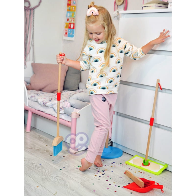 Zestaw do sprzątania od marki Tooky Toy nauczy odpowiedzialności dziecko i pozwoli mu naśladować dorosłych w codziennych obowiązkach! Przedmioty można łatwo przechowywać za pomocą stojaka z niebieską podstawą, na którym można je zawiesić. Dzięki zestawowi do sprzątania dziecko nauczy się sposobu, w jaki należy używać poszczególnych przedmiotów. Maluch nauczy się dbać o porządek i czystość w swoim pokoju.