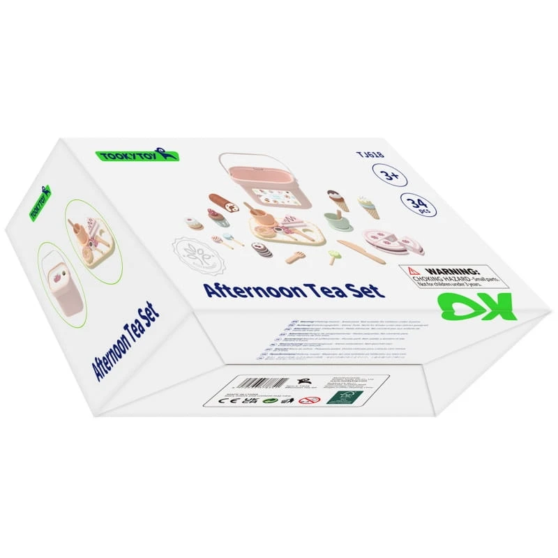 Sweet Cake to drewniany zestaw słodkości od Tooky Toy, doskonały do kreatywnej zabawy podczas przyjęć. Zawartość tego plastikowego pudełka obejmuje piękny tort i roladę, które można kroić, dwie urocze filiżanki na herbatę, ciastka, pączki, lody, lizaki oraz elegancka tacę do podawania tych pyszności. To kompleksowe wyposażenia pozwala na zorganizowanie uroczystego przyjęcia urodzinowego lub innego wyjątkowego spotkania z przyjaciółmi. Zabawa ze Sweet Cake nie tylko rozwija wyobraźnię dziecka, ale także wspiera rozwój umiejętności manualnych. Używając tego zestawu, maluchy mogą wcielać się w rolę małych cukierników cieszyć się tworzeniem niezapomnianych chwil podczas wspólnych spotkań.
