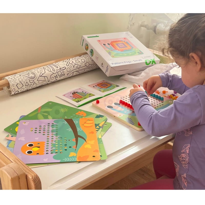 Rewelacyjna układanka dla najmłodszych dzieci pozwoli pobudzić ich kreatywność. Plansze z kolorowymi obrazkami mają miejsca na różnobarwne pinezki, które udekorują dzieła sztuki i wykończą obrazek. Stwórz piekną muszlę ślimaka, lub barwne łuski rybki ucząc się przy tym precyzji i cierpliwości. Zabawki od renomowanej firmy Tooky Toy skierowane są już dla najmłodszych dzieci, które wykonuje się z całkowicie naturalnych, biodegradowalnych oraz hipoalergicznych materiałów, dzięki czemu są one w stu procentach bezpieczne i nieszkodliwe nie tylko dla samego środowiska, ale także i dla Twojej pociechy.