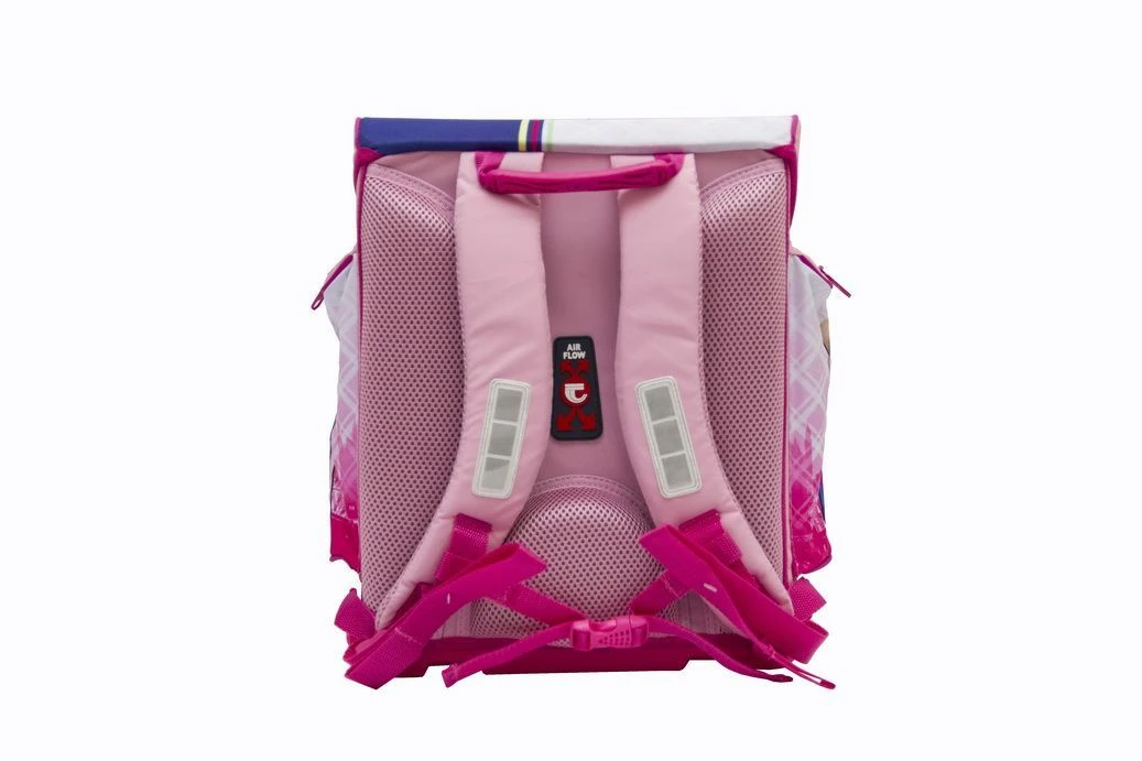 Tornister wykonany z ergonomicznej pianki o właściwościach wodoodpornych. Tył tornistra jest wyściełany siatką, co sprawia, że tornister "oddycha" i nie przykleja się do pleców dziecka. Usztywnione piankowe szelki oraz dodatkowe mocowanie pomagają zapobiegać wadom postawy. Dodatkowo wygodna rączka oraz łatwe zapięcie na "klik" podnoszą komfort użytkowania.