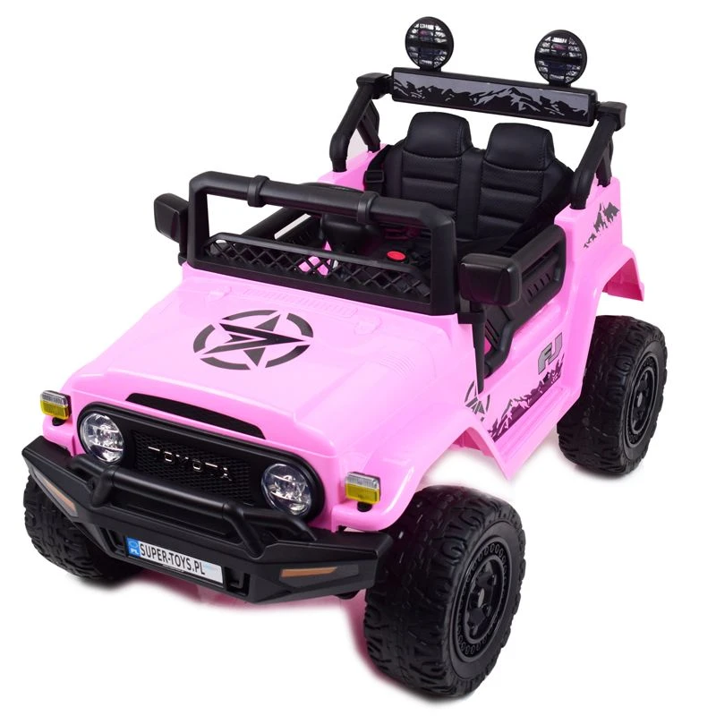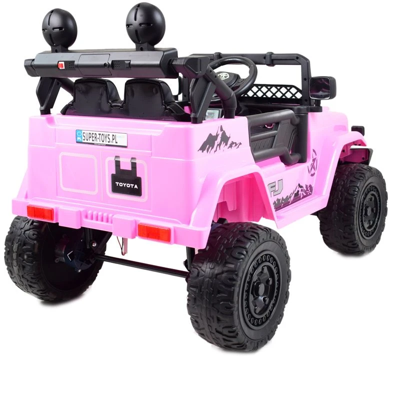 TOYOTA FJ CRUISER 4X4 180 W z systemem ESW - system wolnego startu i hamulcem oraz z kołami EVA zasilanie pojazdu - 1X24 V z napędem na cztery koła ( najmocniejsza wersja) zachwyci nie jednego przyszłego kierowcę. Dzięki zastosowanymmocnym silnikom 45 W ( 4 sztuki), auto jeździ po nierównym terenie bez żadnych problemów - posiada olbrzymie miękkie koła EVA, Najciekawszą funkcją pojazdu jest SYSTEM WOLNEGO STARTU, oraz SYSTEM HAMOWANIA Z PILOTA. Ciekawym elementem jest oświetlenie pojazdu - świecące światła przedni. Duże koła EVA zapewniają cichą jazdę. Podświetlana deska rozdzielcza pojazdu oraz wskaźnik naładowania akumulator z nowoczesnym panelem z wejściem USB,bluetooth, z wgranymi melodiami dają pełen komfort użytkowania pojazdu - wiemy na jak długo mamy jeszcze " paliwa" ( napięcia w akumulatorach). Nowoczesny panel daje możliwość odgrywania utworów z urządzeń zewnętrznych .