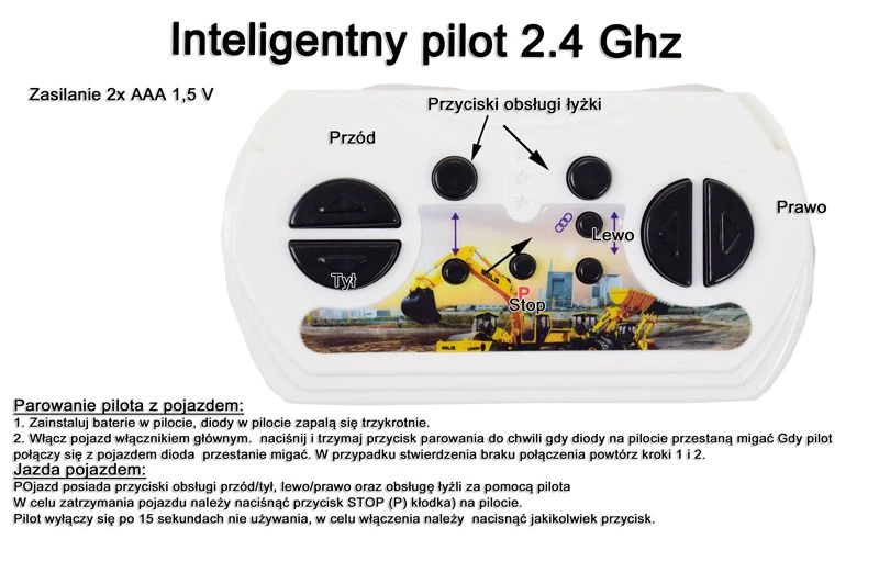Pilot zdalnego sterowania: | Tak jazda+sterowanie łyżką |