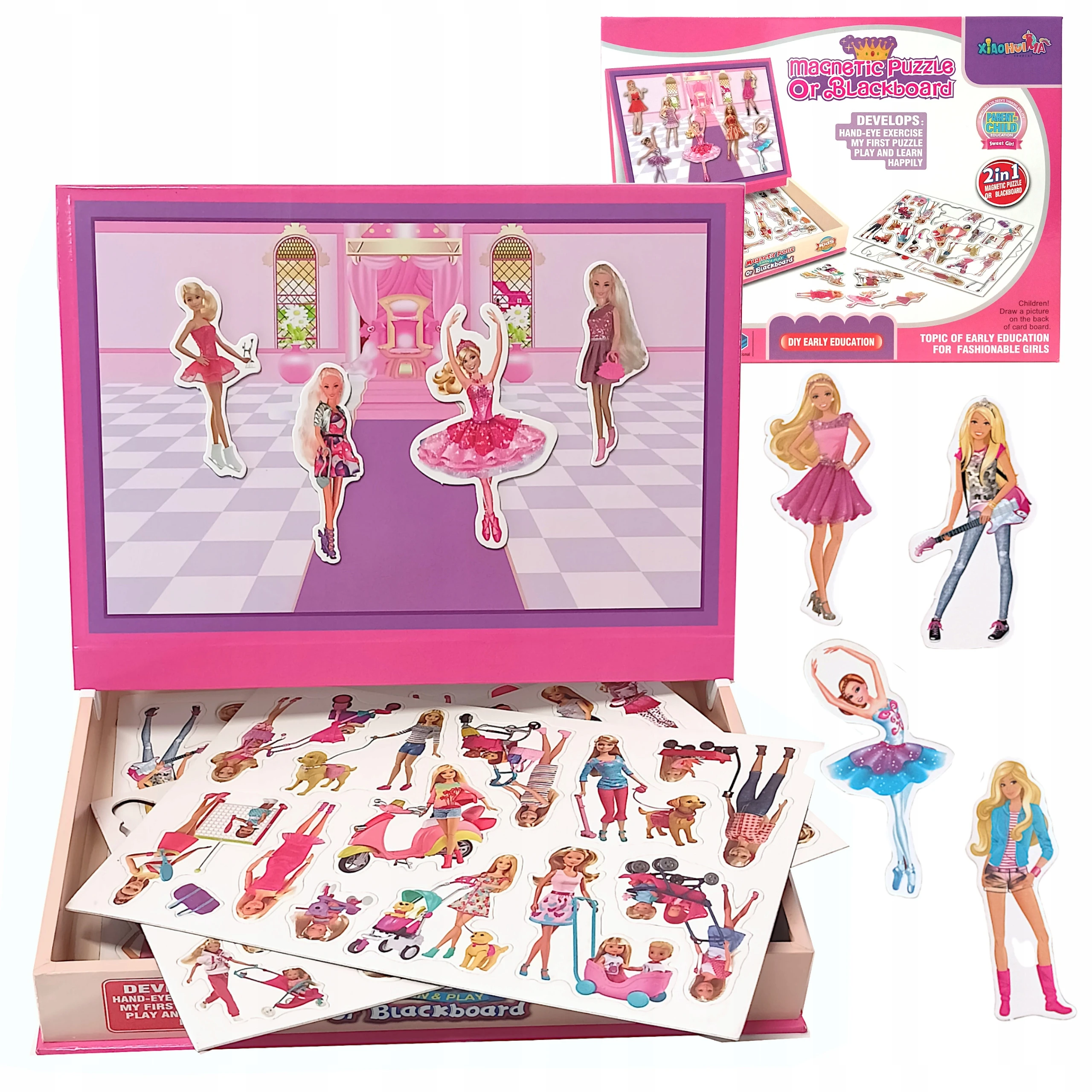 Tablica Edukacyjna Magnetyczna 2w1 z Puzzlami – Zestaw Kreatywny dla Dziewczynki