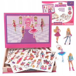 - Strona magnetyczna – umożliwia układanie kolorowych elementów i tworzenie własnych stylizacji modelki
