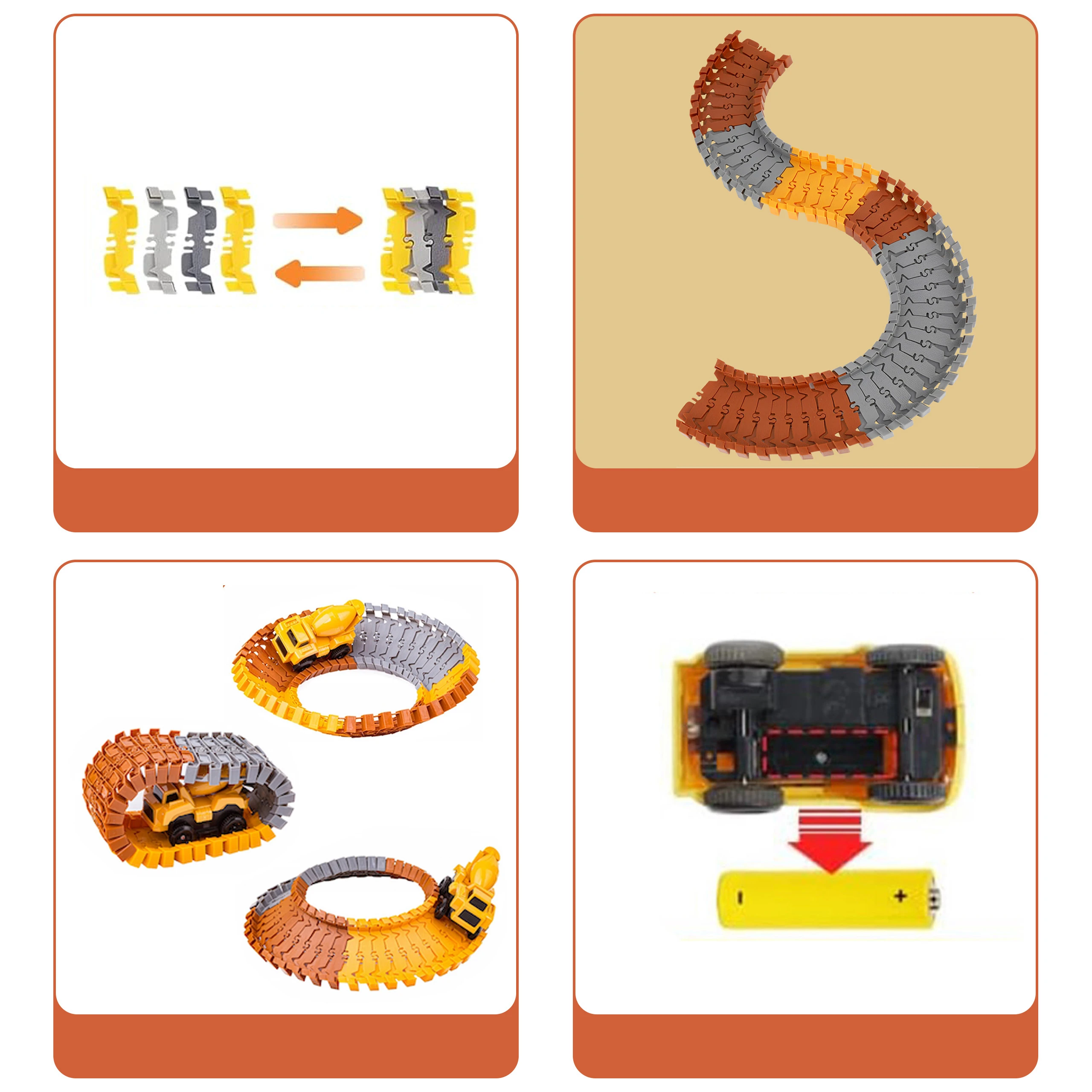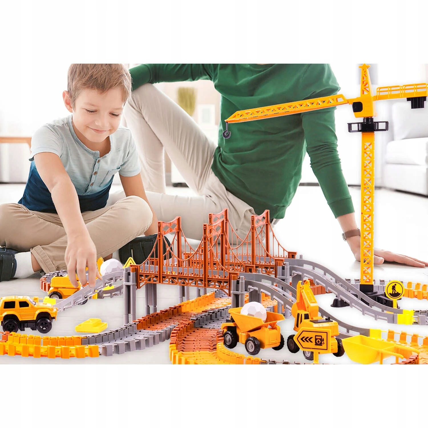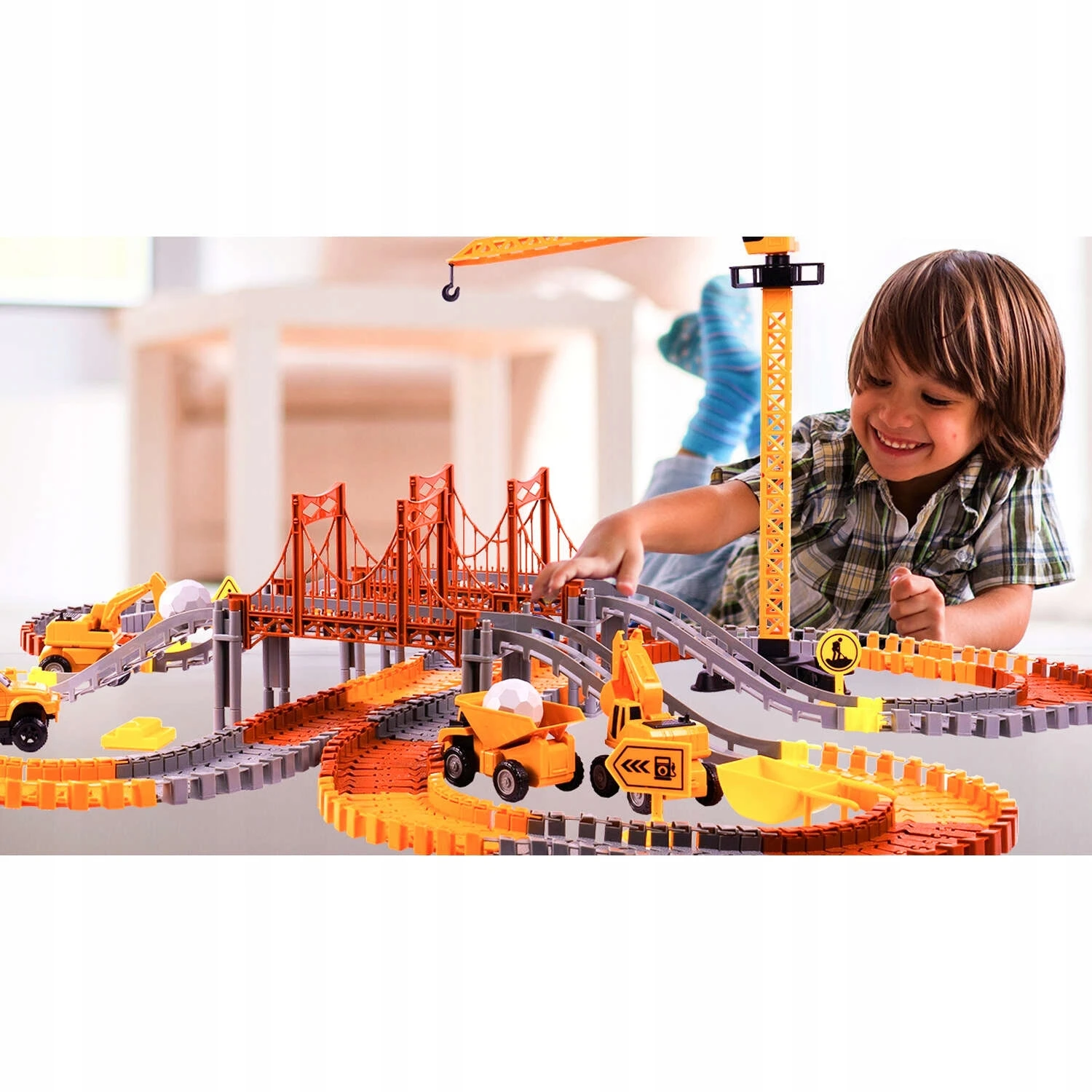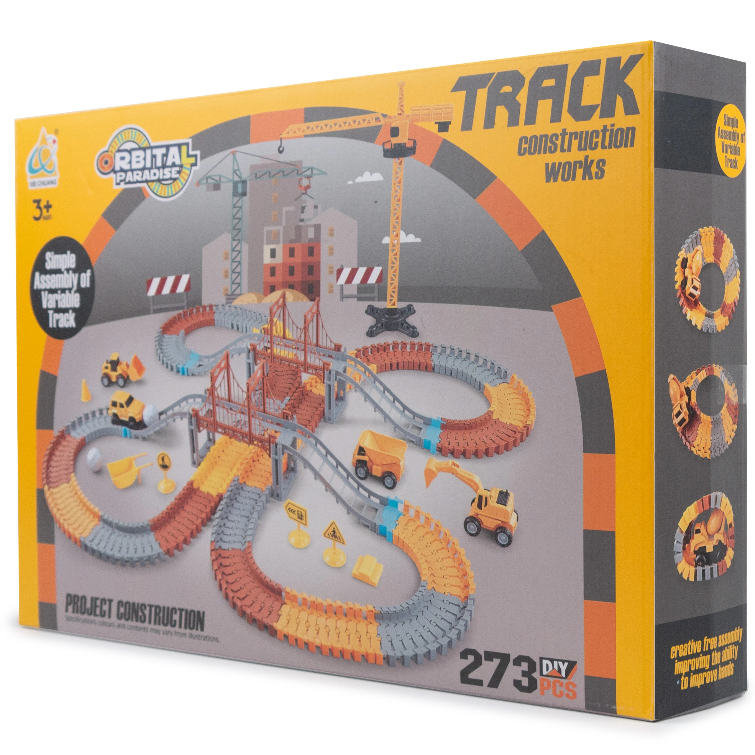 Zestaw torów wyścigowych o tematyce budowlanej zawiera 273 części, które zachęcają dzieci do konstruowania własnych przemysłowych światów.
