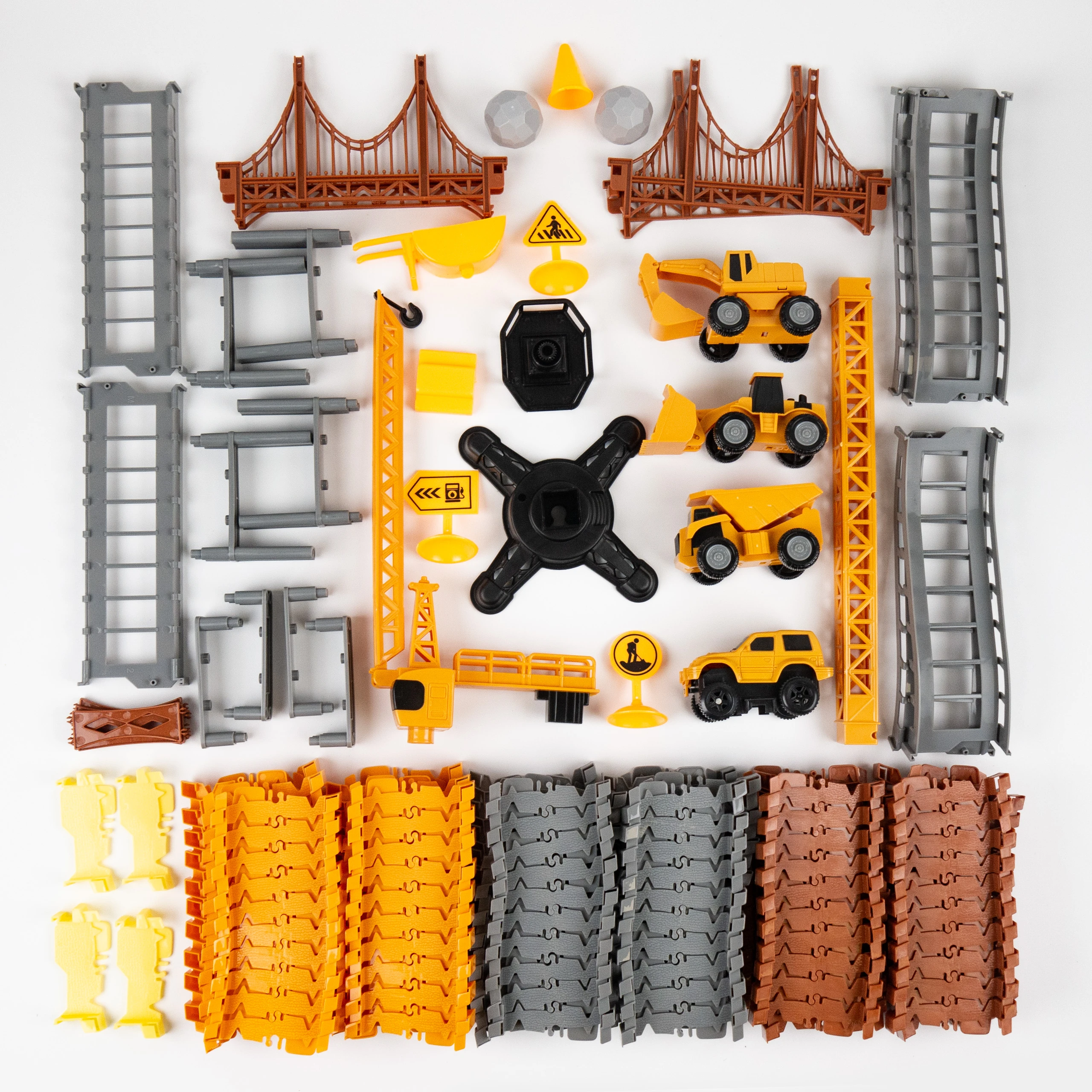 273 elementy konstrukcyjne do złożenia toru wraz z akcesoriami (autka, dźwig, akcesoria drogowe)