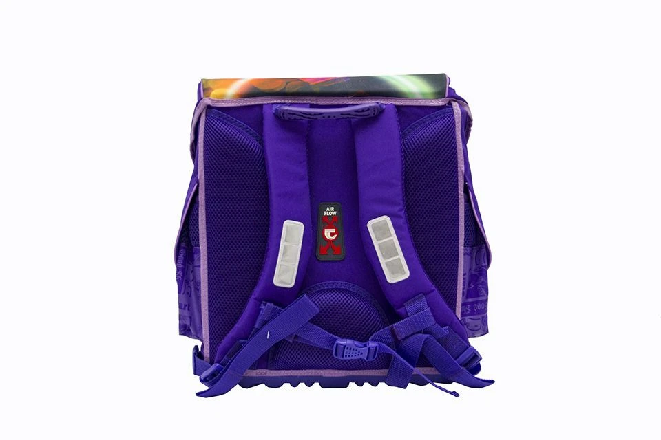 Tornister wykonany z ergonomicznej pianki o właściwościach wodoodpornych. Tył tornistra dodatkowo wyściełany jest siatką, co sprawia, że materiał oddycha. Odblaski znajdujące się na przodzie, bokach oraz szelkach zapewniają bezpieczeństwo w drodze do szkoły. Tornister posiada komorę główną, dwie mniejsze przegrody (jedna z miejscem na długopisy i inne akcesoria) oraz dwie kieszenie boczne zapinane na rzep. W komorze głównej znajduje się mniejsza przegroda oraz kieszonka zapinana na zamek. Tornister wyposażony jest w wygodną rączkę oraz zapięcie na "klik". Na wewnętrznej stronie klapy umieszczono specjalne miejsce na wpisanie planu lekcji. Bardzo lekki, nie obciąża pleców. Usztywnione, piankowe szelki podnoszą komfort noszenia tornistra, natomiast plastikowy spód ułatwia utrzymanie tornistra w pozycji pionowej oraz chroni jego zawartość przed zniszczeniem.
