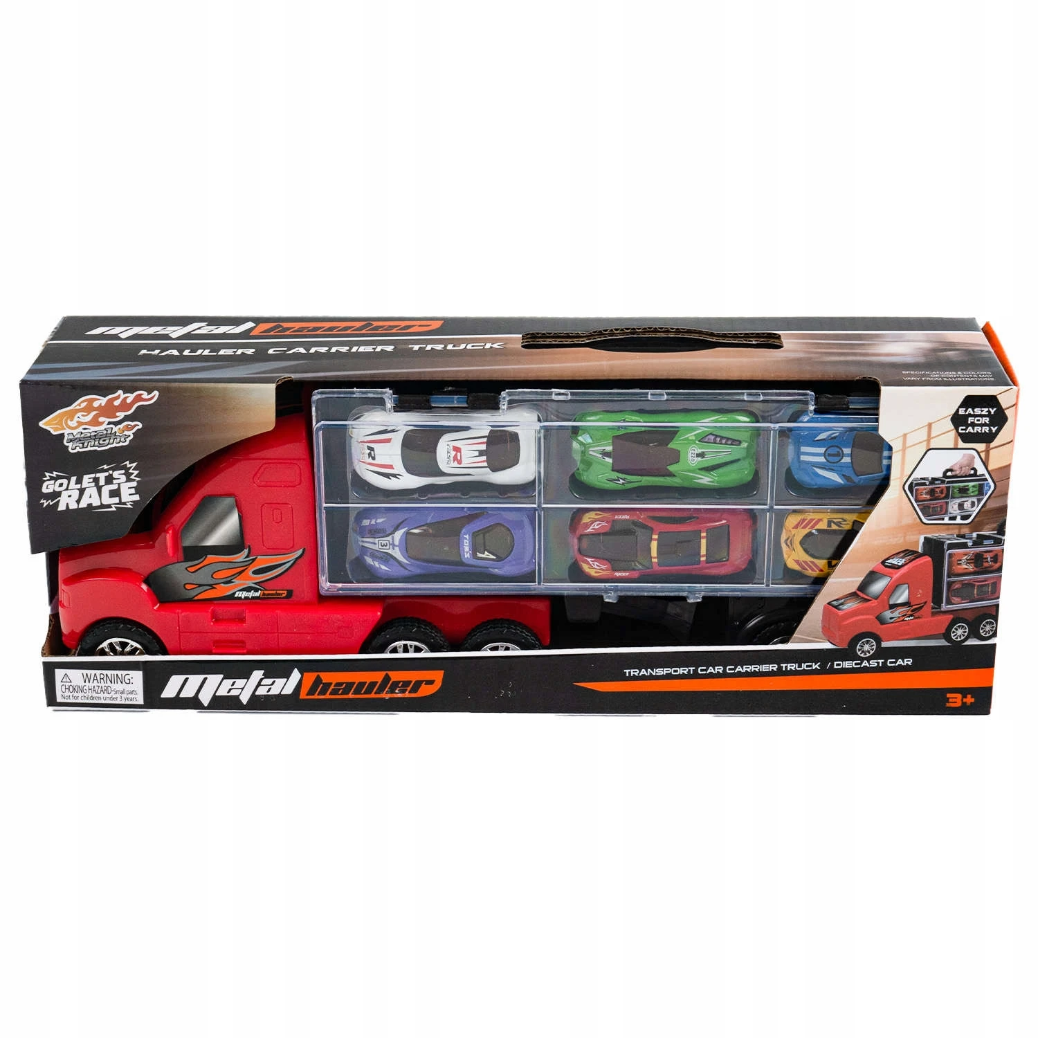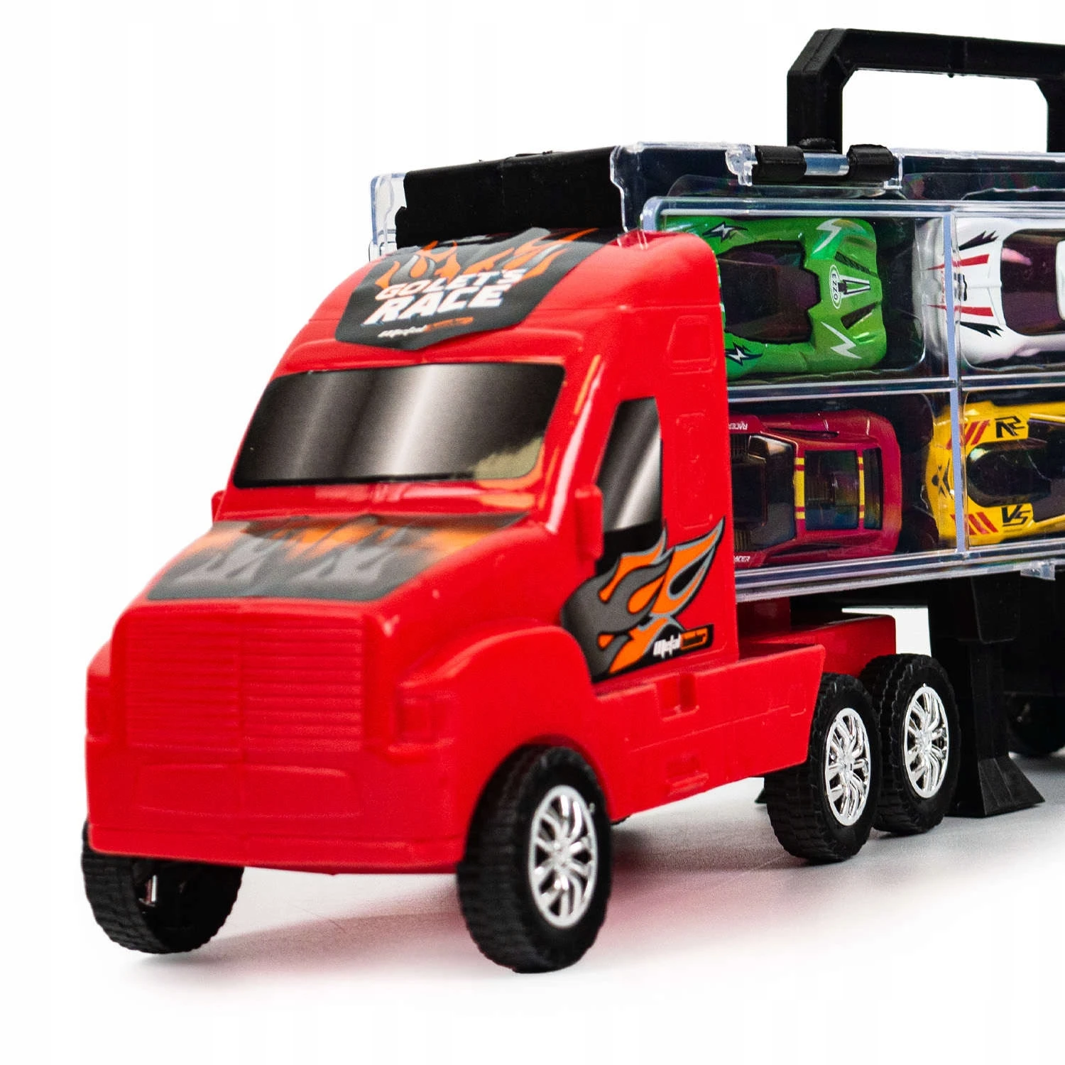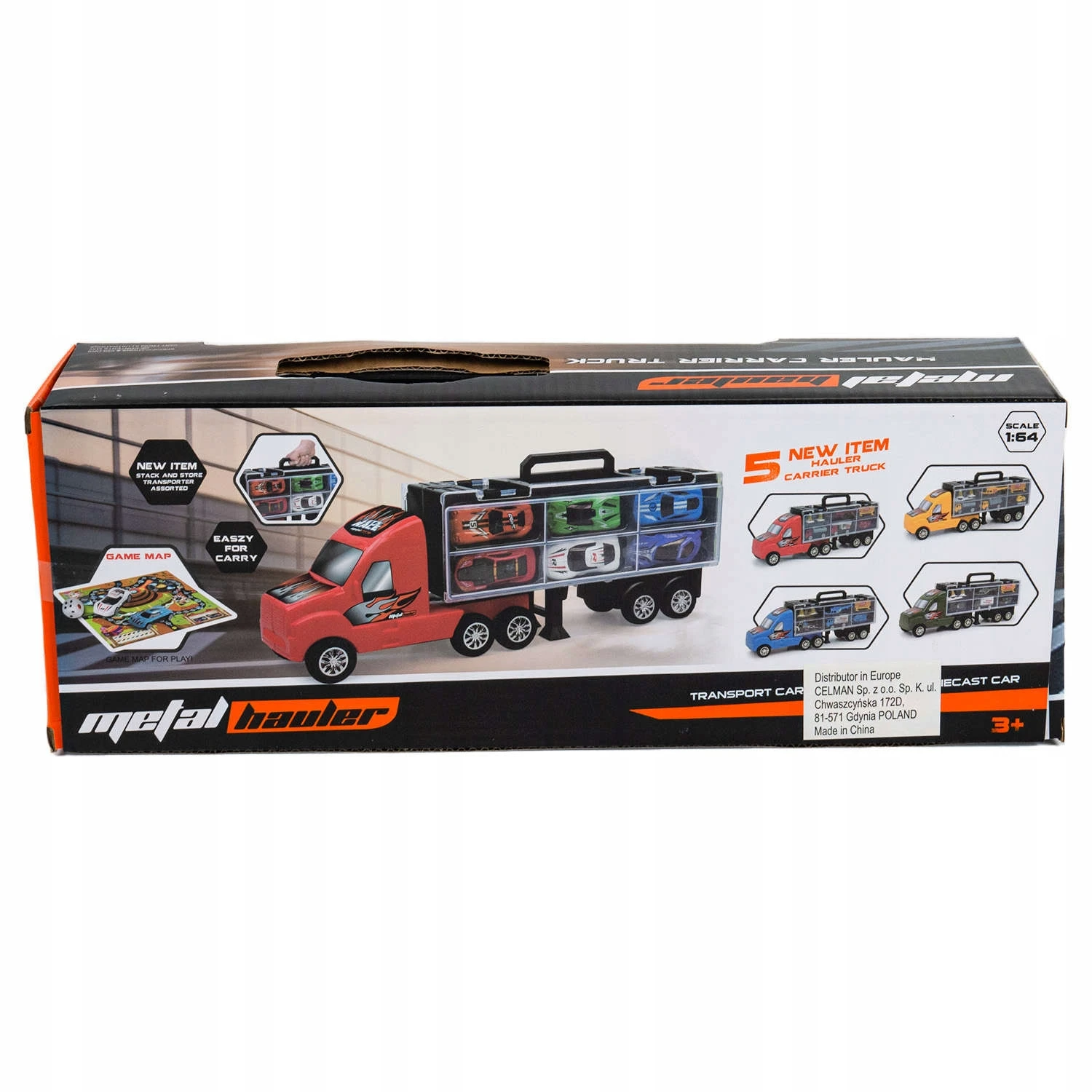 Zestaw składa się z ciężarówki, 6 resoraków oraz doczepianej lawety w kształcie walizki, którą wygodnie można transportować wraz z zawartością. Dzięki temu zestawowi masz pewność, że Twoja pociecha nie zagubi ani jednego pojazdu ze swojej kolekcji autek. Dzięki wygodnemu uchwytowi przenoszenie całego zestawu jest bezproblemowe.