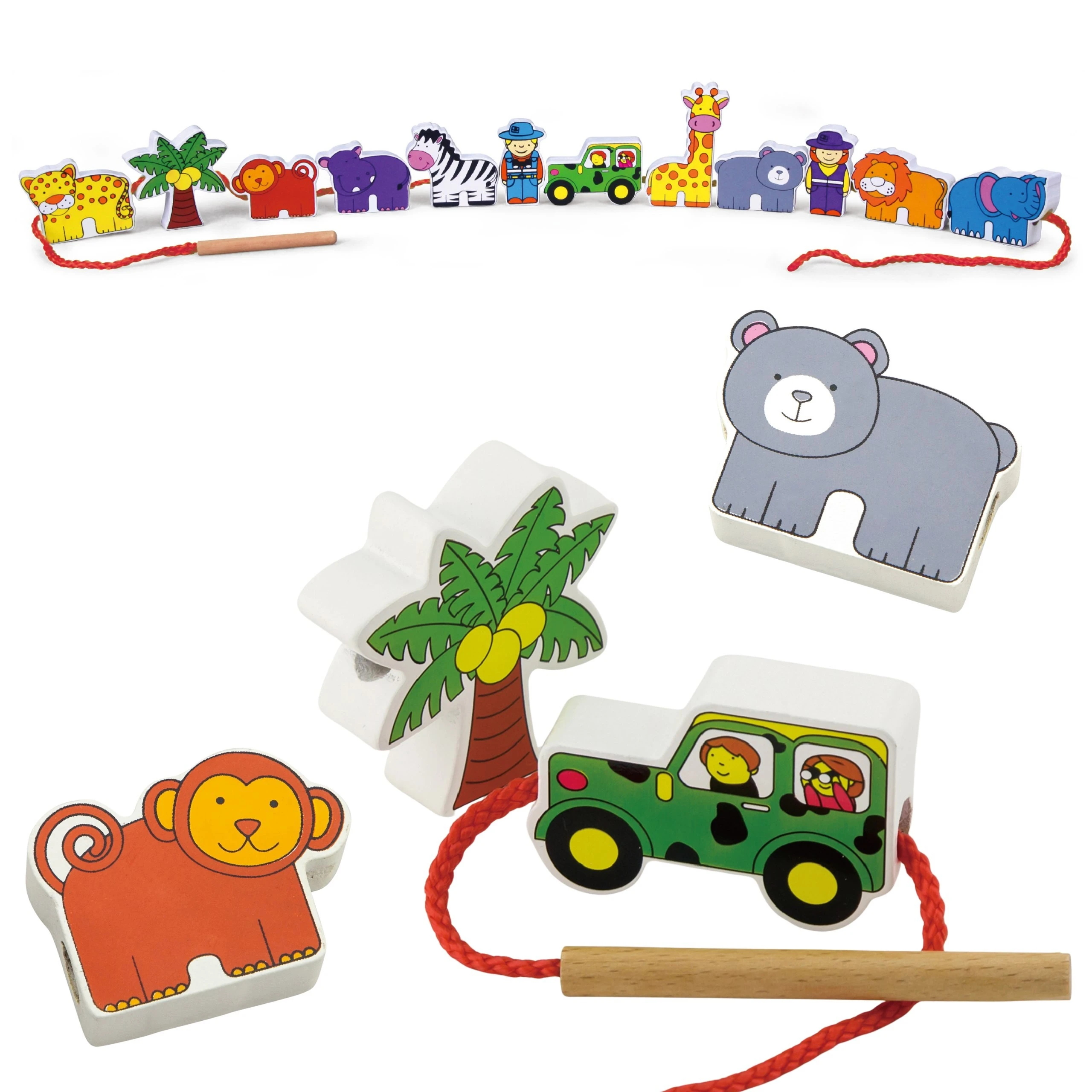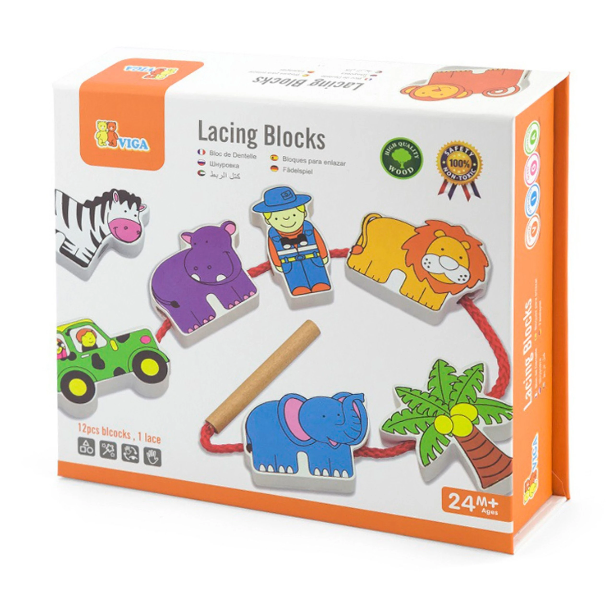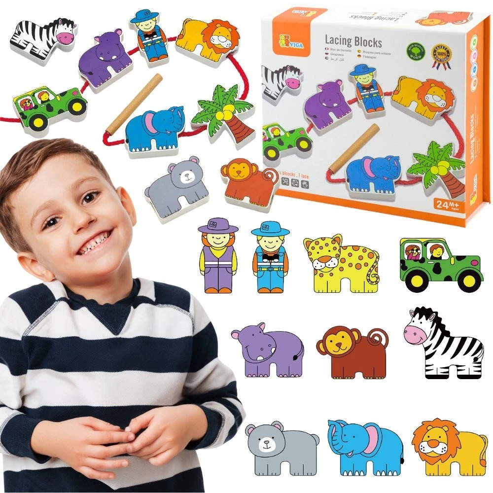 VIGA Drewniana Nawlekanka Przeplatanka Klocki Safari ZOO Montessori