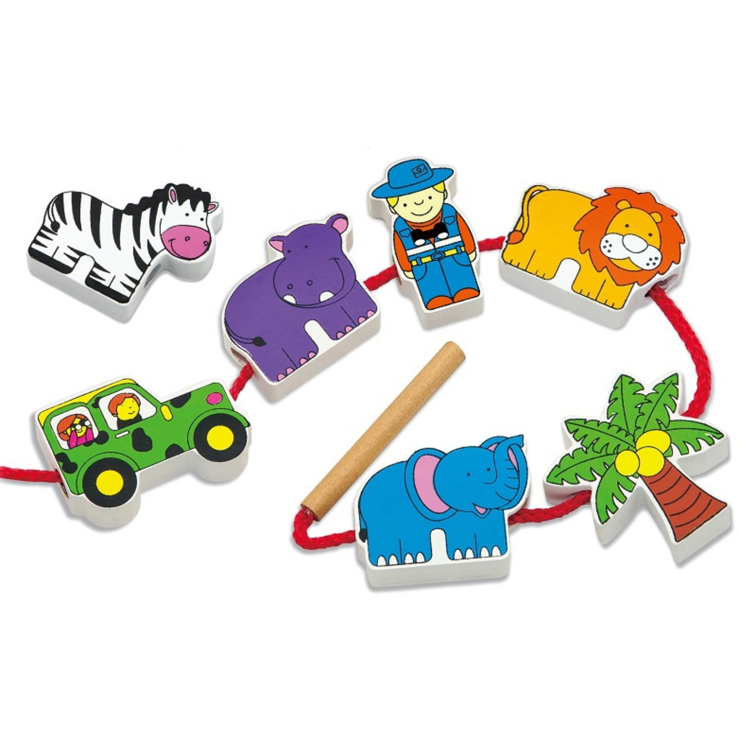 Piękne, drewniane klocki do nawlekania przeniosą Twoje dziecko w świat mieszkańców Safari i ZOO. 12 starannie pomalowanych elementów zachęca do zabawy i nauki poprzez kreatywne układanie. Sznureczek z drewnianym kołeczkiem pozwala maluchowi nawlekać klocki w dowolnej kolejności, ćwicząc precyzję i cierpliwość. Klocki przedstawiają zwierzęta, samochód Jeepa oraz przewodnika, pomagając w poznawaniu świata. Zabawka wykonana z bezpiecznego drewna i nietoksycznych farb sprawia, że nauka staje się przyjemnością.