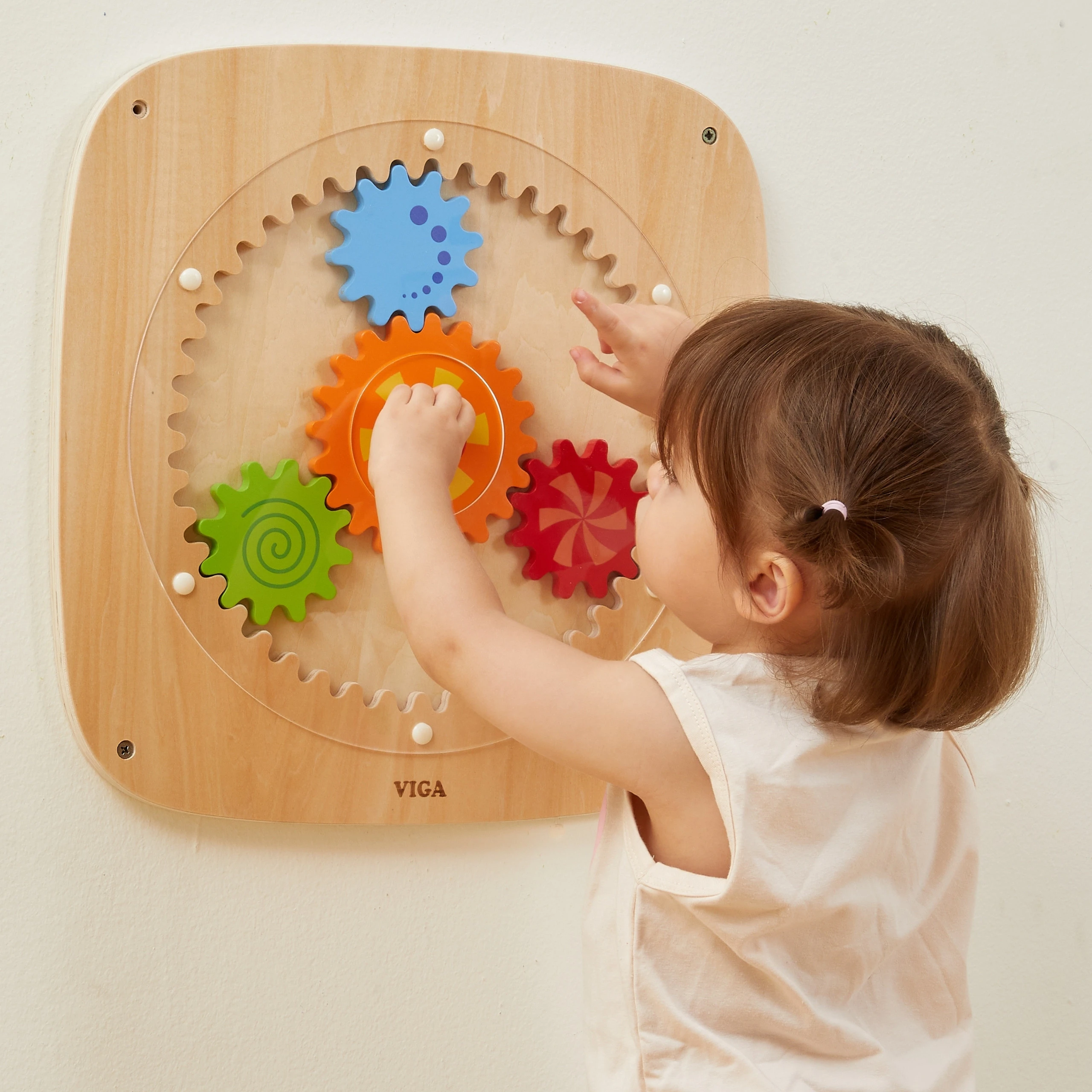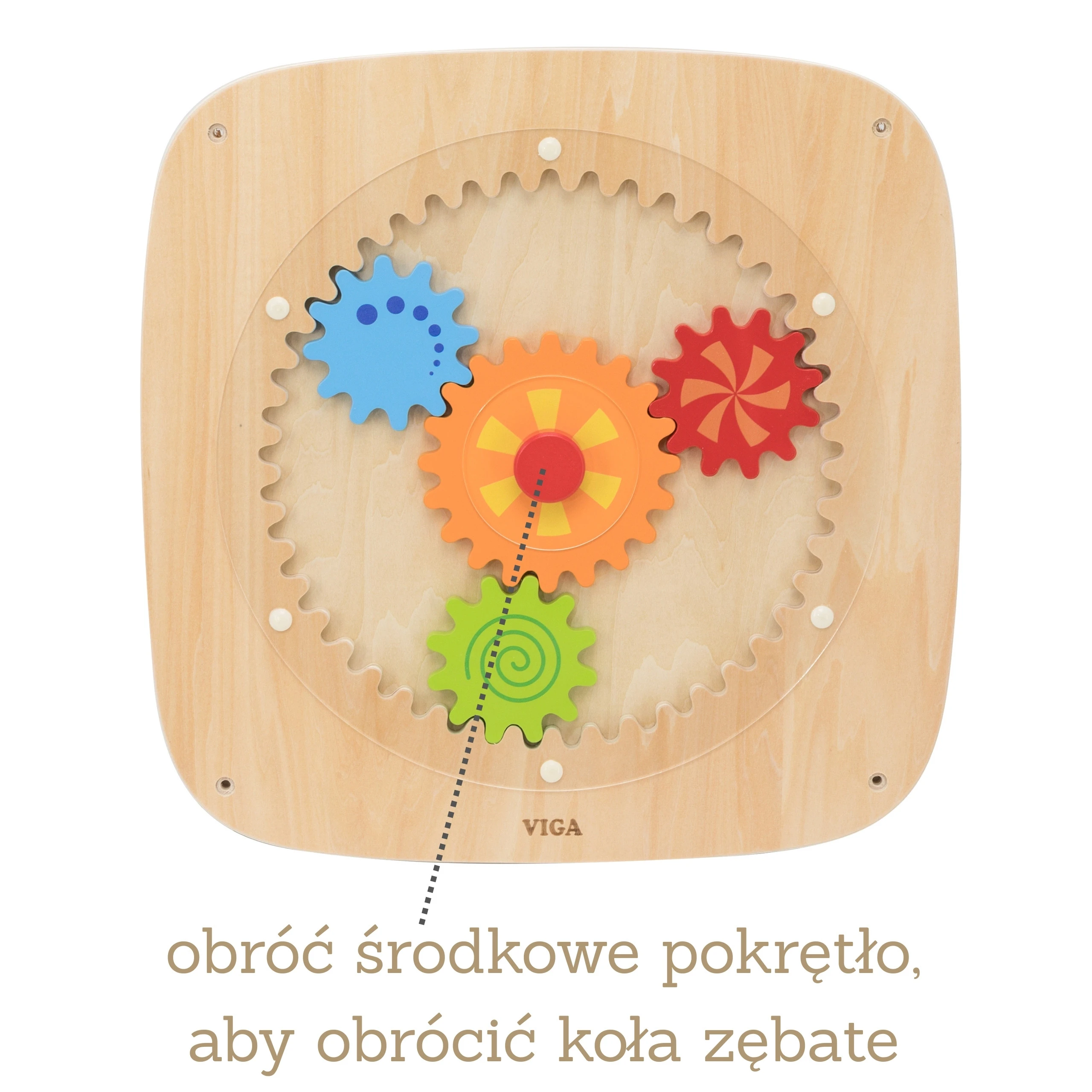 VIGA Drewniana Tablica z Kolorowymi Kołami Zębatymi
