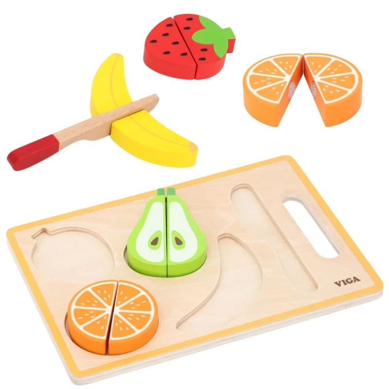 VIGA Drewniana Układanka Edukacyjna Montessori Owoce do Krojenia