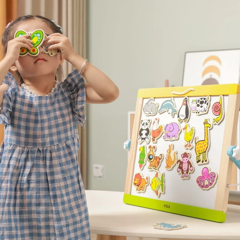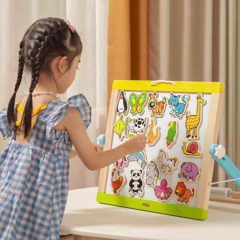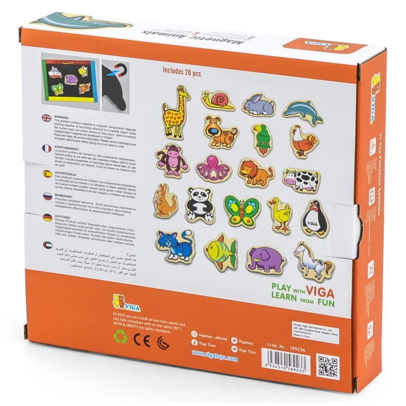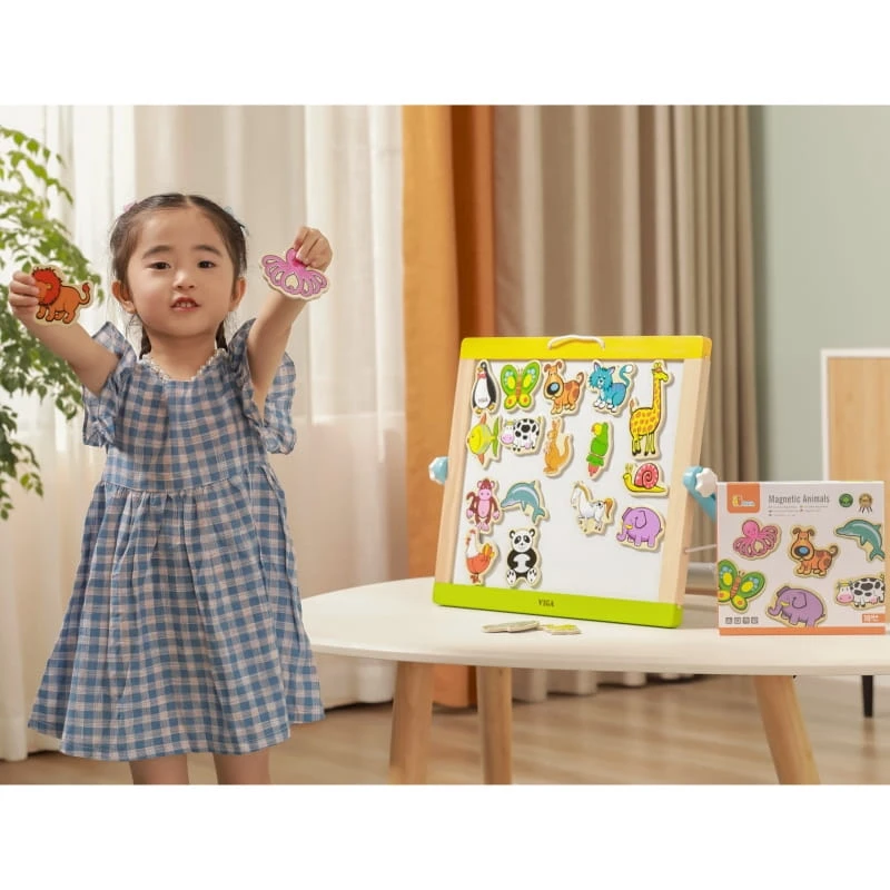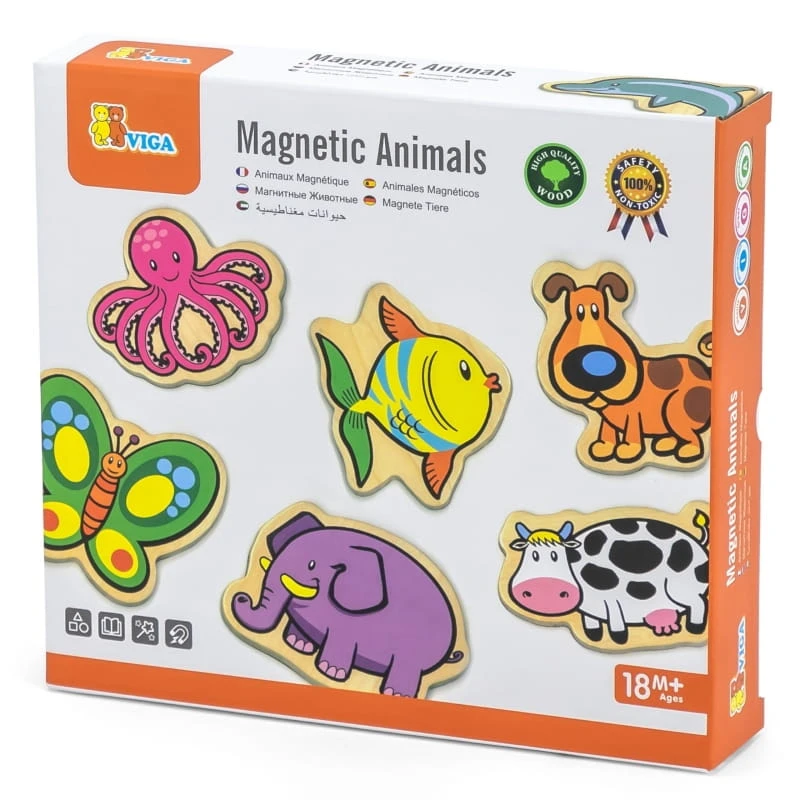 Drewniane magnesy ze zwierzątkami dla dzieci od 3 roku życia cenionego producenta zabawek Viga wykonane z bezpiecznych ekologicznych materiałów pozwolą na kreatywną, ciekawą zabawę w domu i przedszkolu.