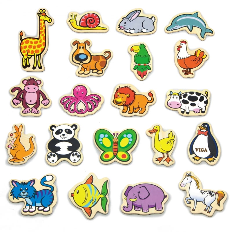 VIGA Drewniane Magnesy Zwierzęta zestaw 20 elementów